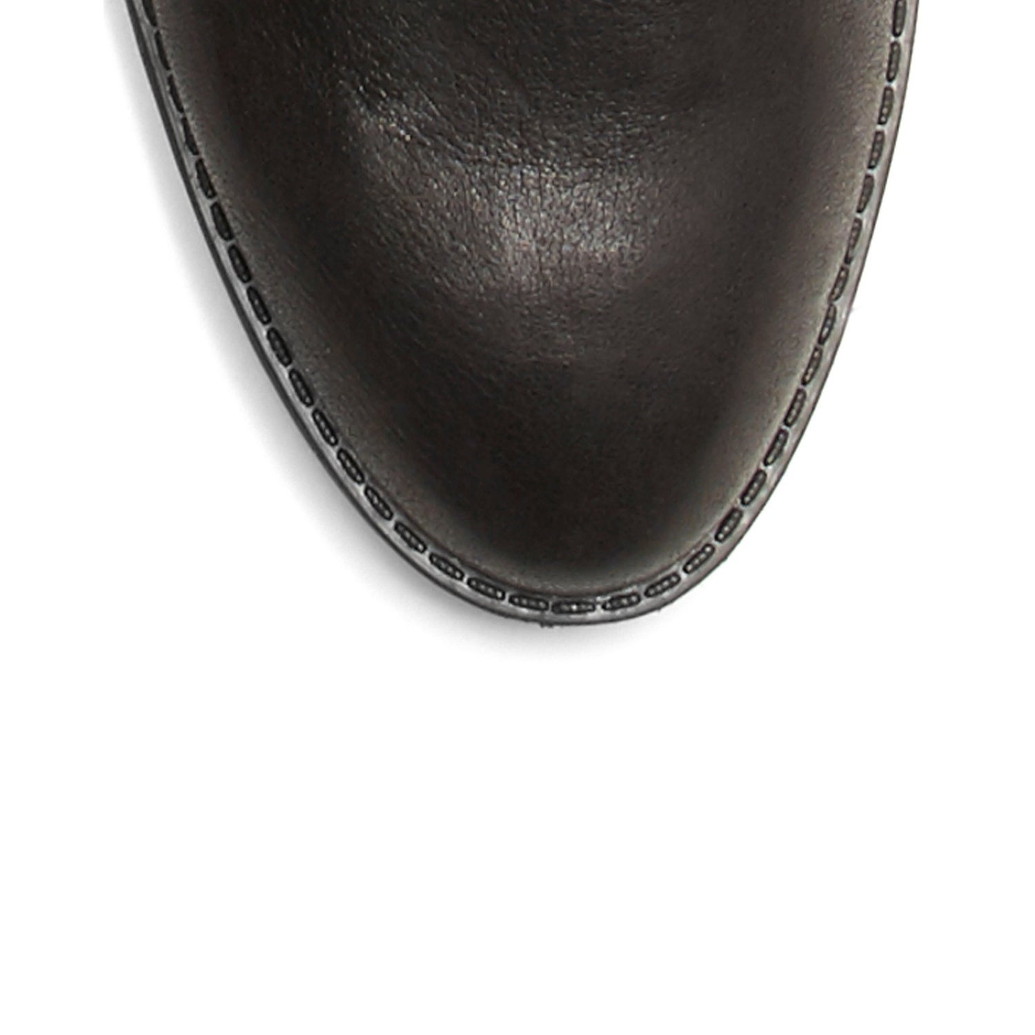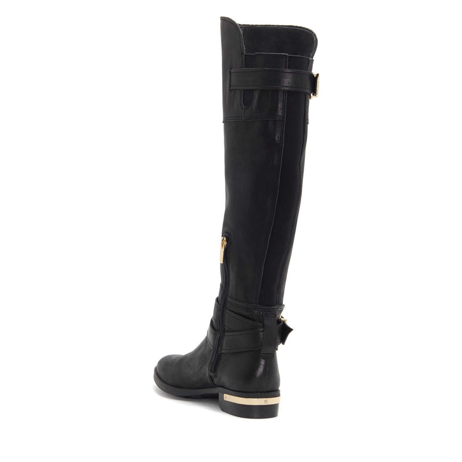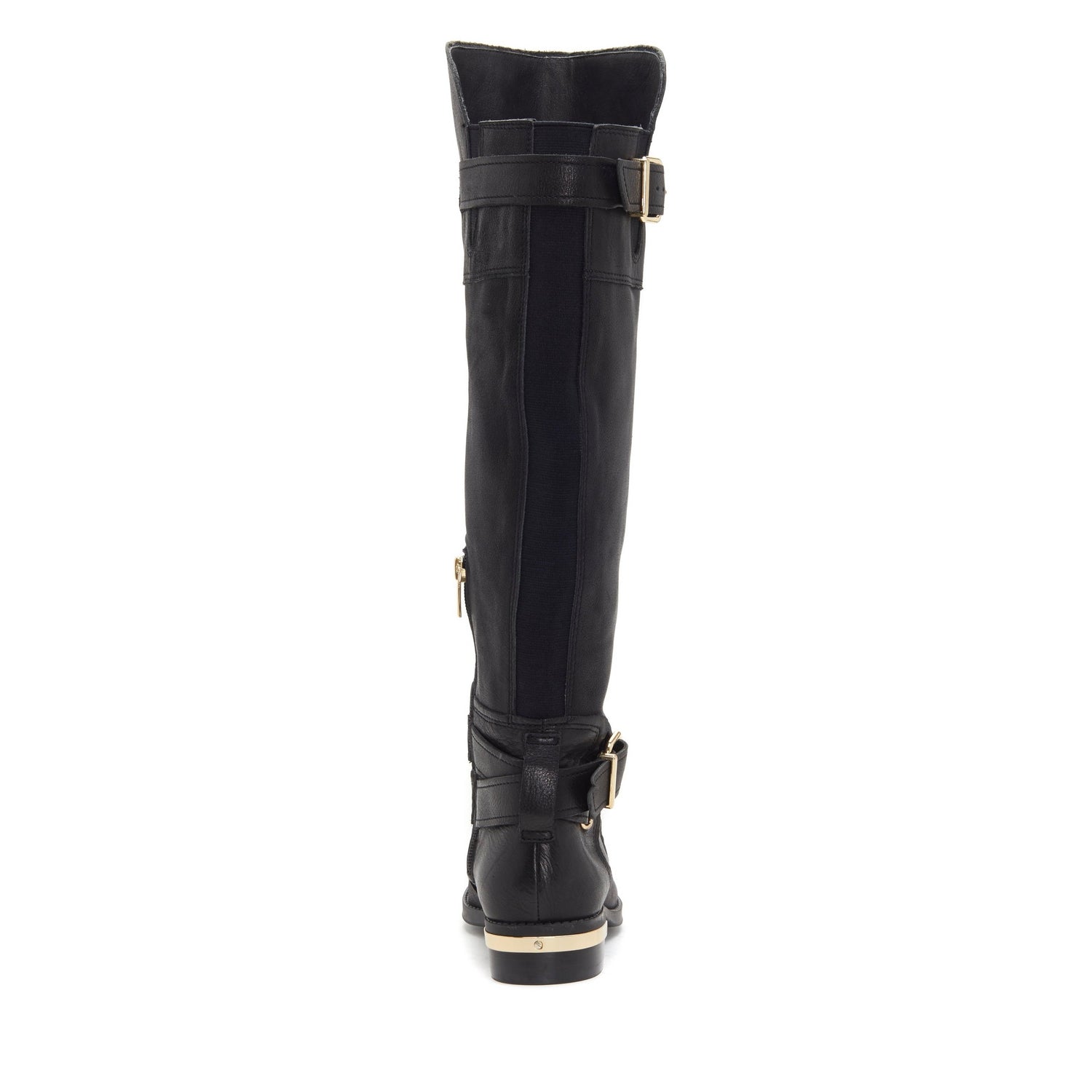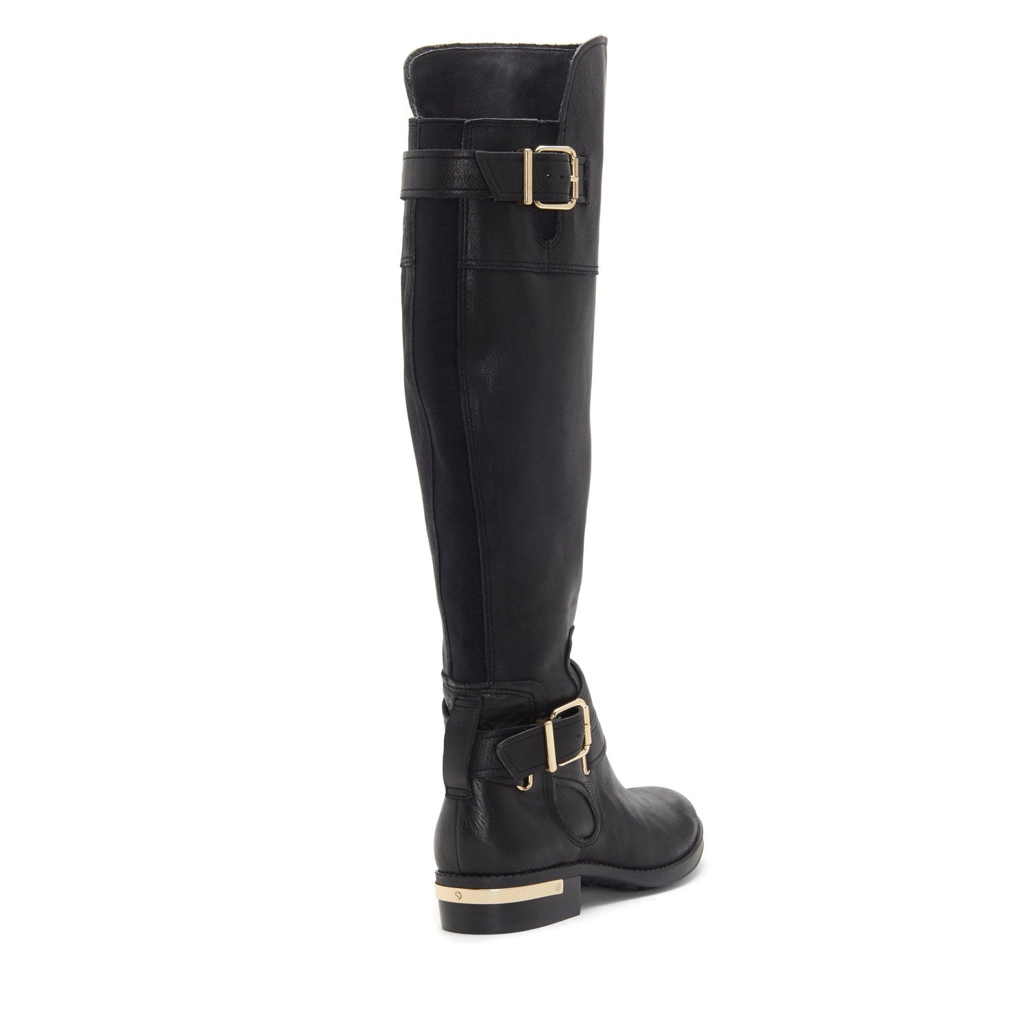 Women's Round Toe Buckle Strap Flat Knee High Boots in Black