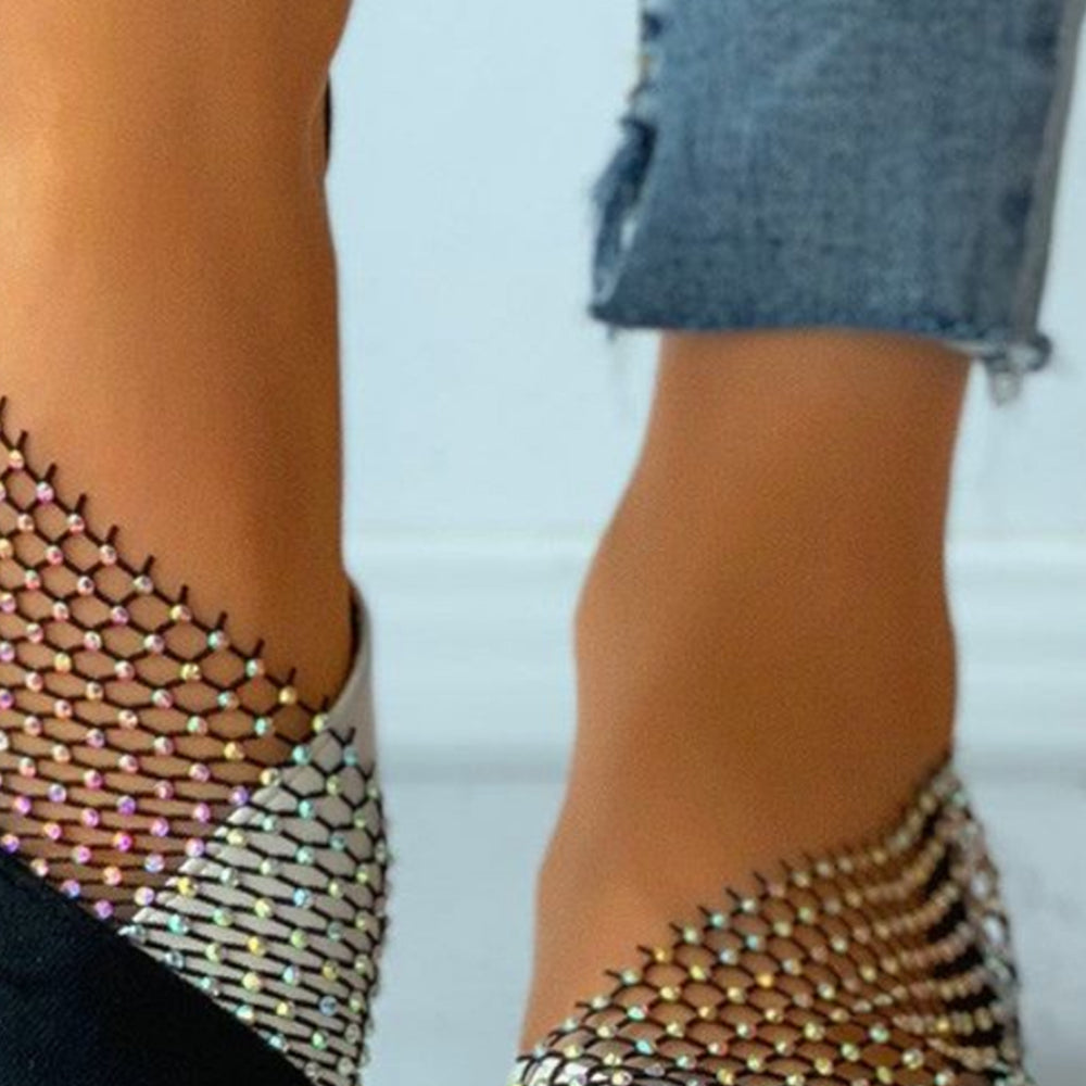 Black Colorblock Pointed Toe Hallow Flats With Rhinestone Bow Decor Flats