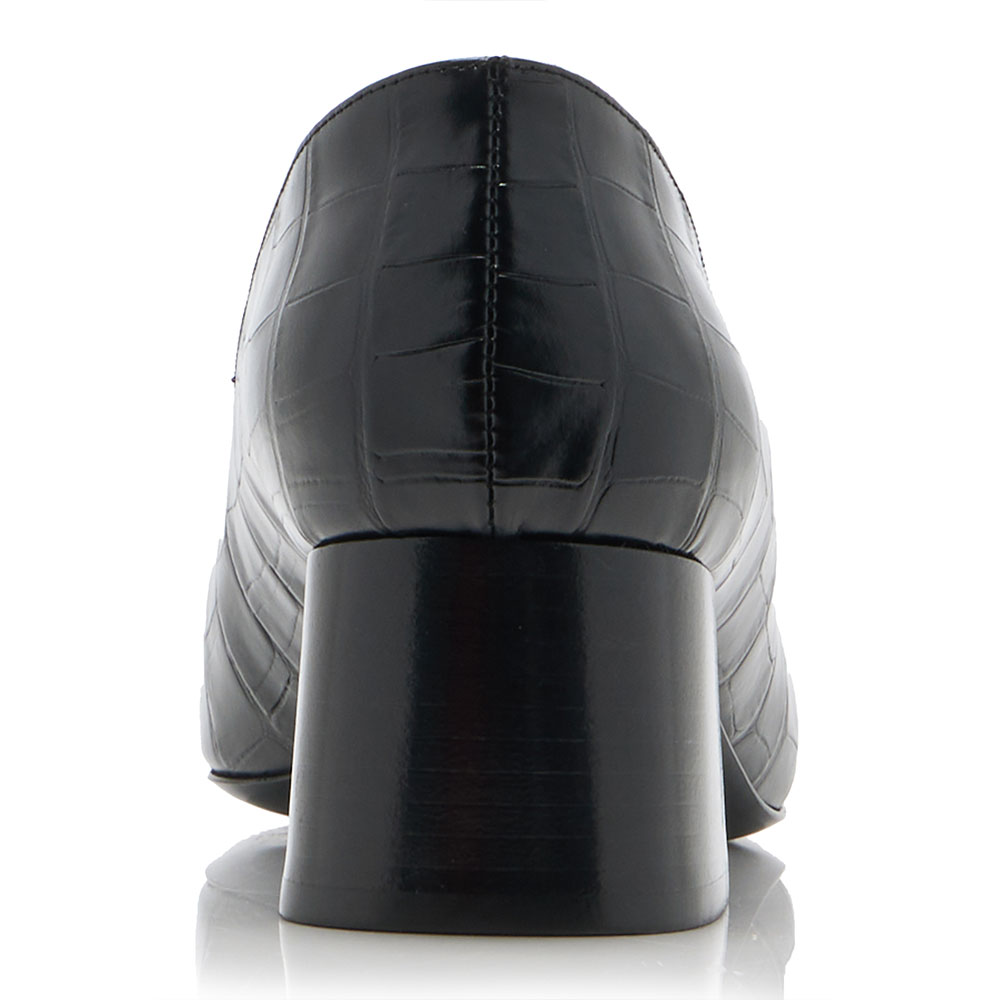 - The heeled loafers with a stylish square toe and croco embossed upper design