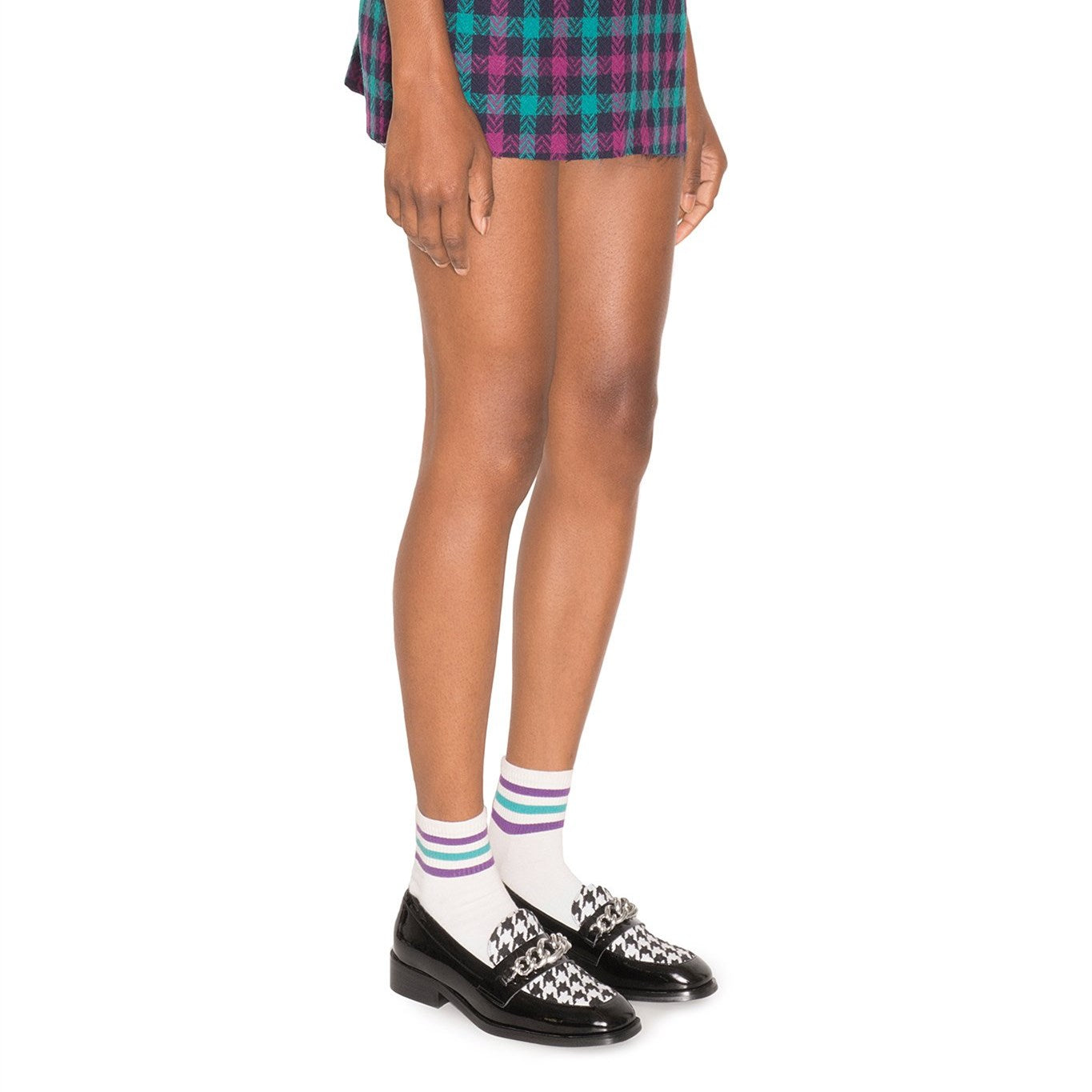Black Houndstooth Patchwork Chain Decor Classic Women's Loafers