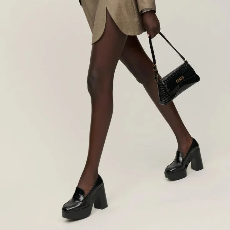 Step into sleek sophistication with our Black Closed Toe Platform Loafers, designed for modern edge and everyday comfort. These slip-on loafers feature a refined closed toe and are elevated with a bold block heel and platform sole, adding height without sacrificing stability. Minimalist yet striking, they bring contemporary flair to both casual and tailored looks.