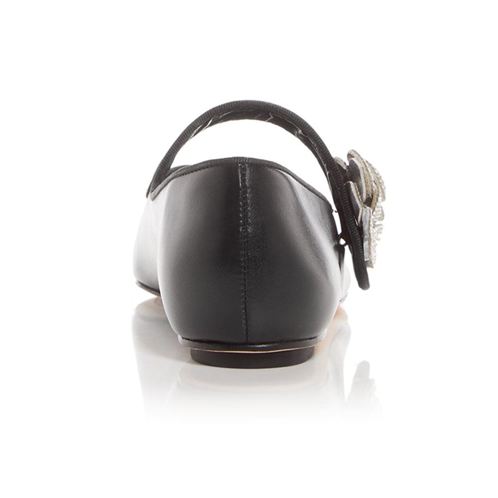 Black Square Toe Rhinestone Flower Strap Women's Dress Flats
