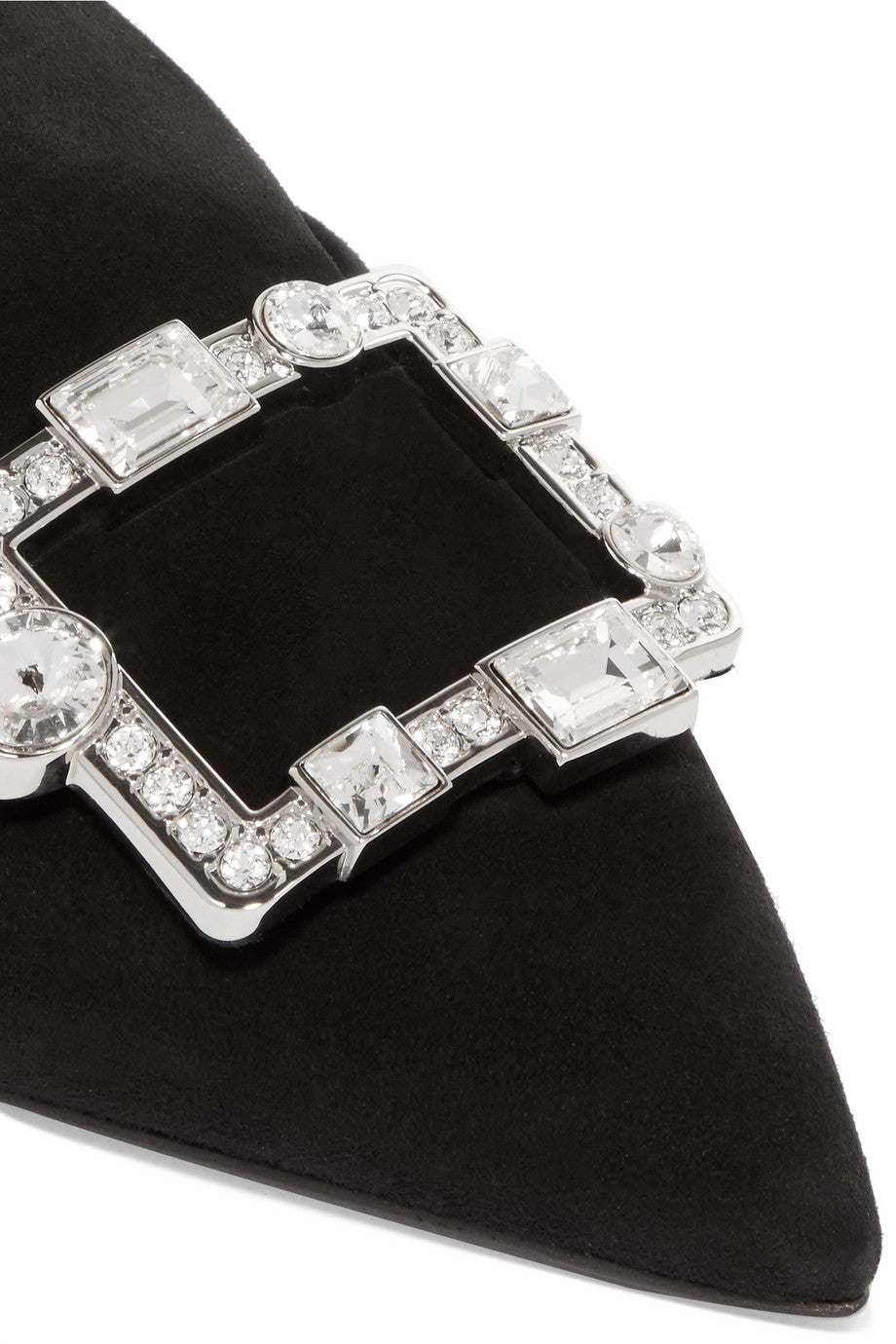 Black Vegan Suede Rhinestone Buckle Mule Loafers for Women