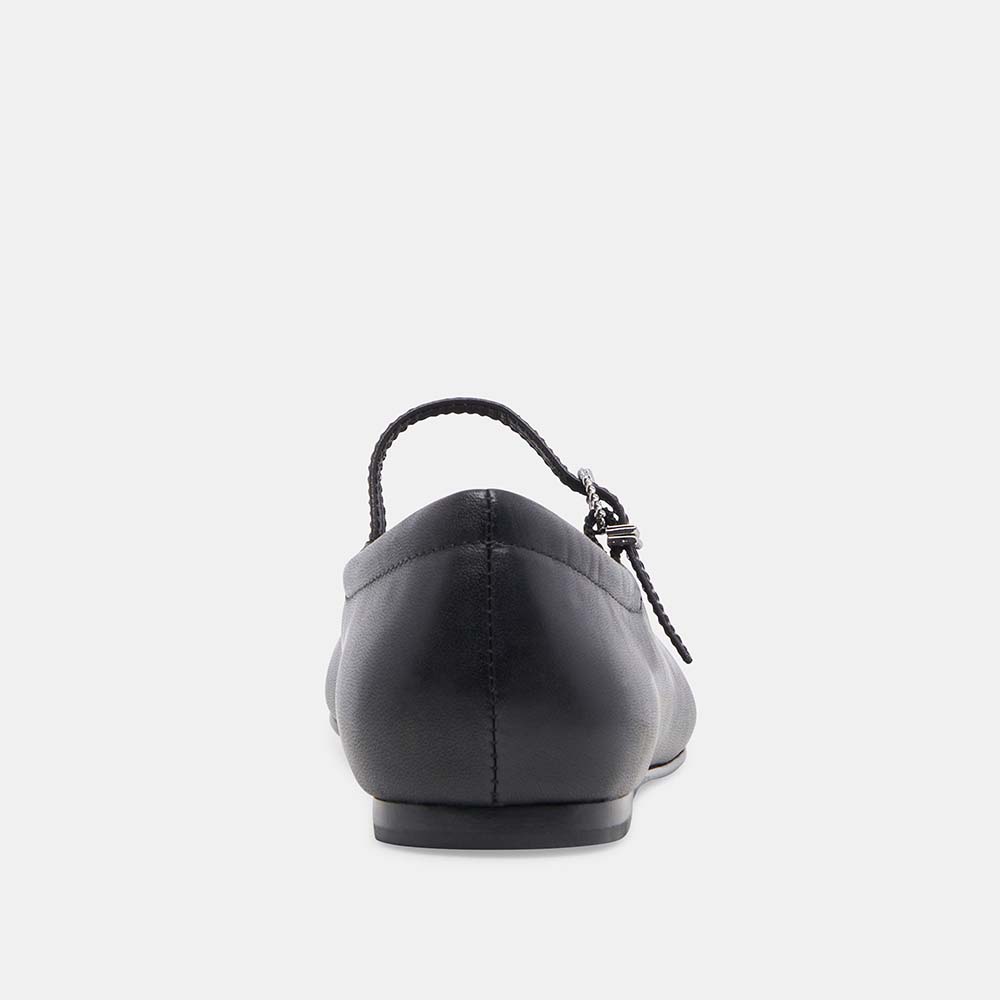 - Special Designs: Black vegan leather ballet flats with buckle fastening strappy design._ _ _