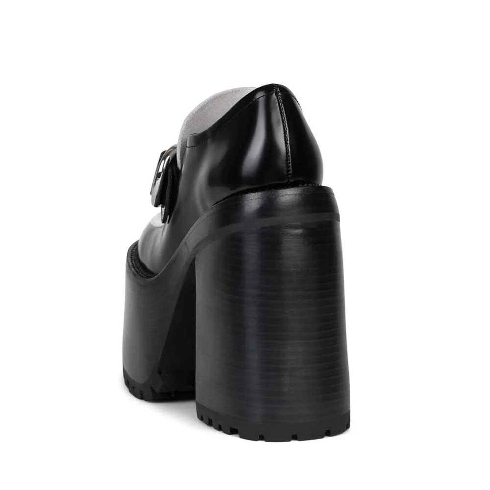 Step out boldly in these black & white round-toe buckled strap chunky heel platform loafers. Offering style and comfort, these shoes feature striking buckled straps and a trendy chunky heel for added flair.