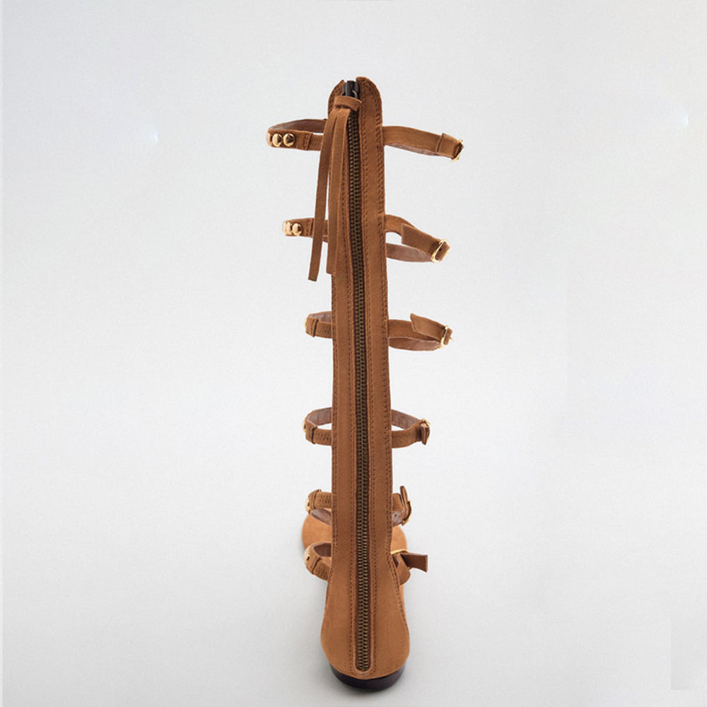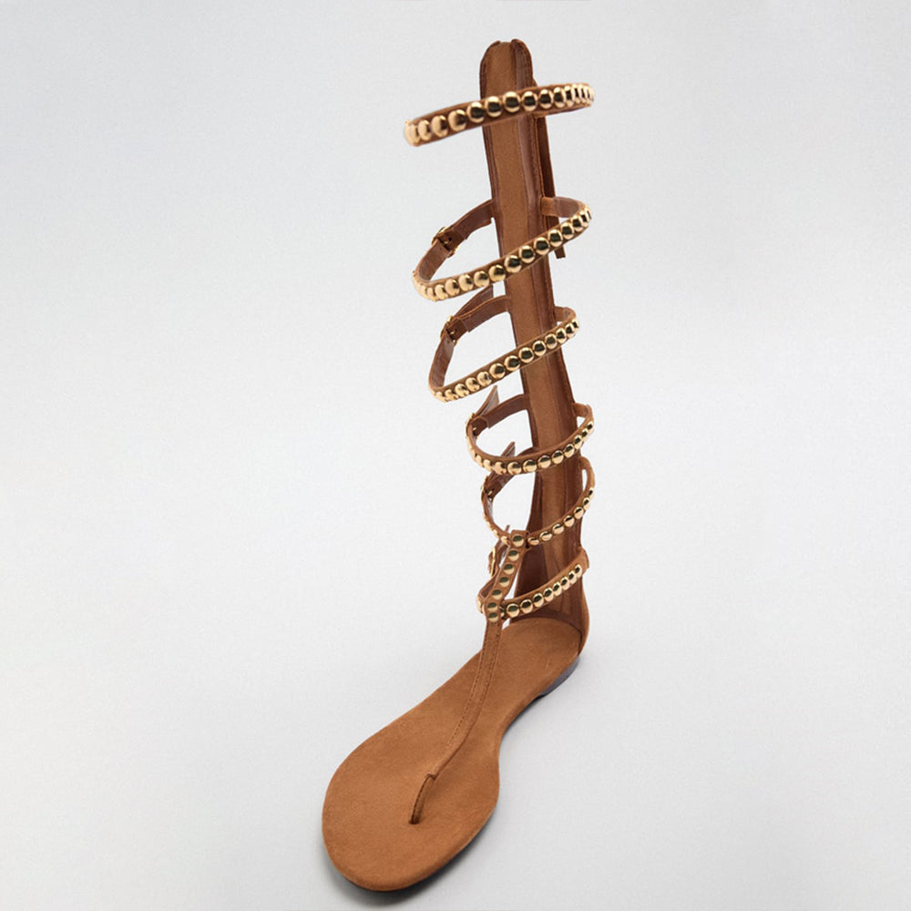 Brown Pointed Toe Strappy Sandals With Rivet Buckles Flats Gladiator Sandals