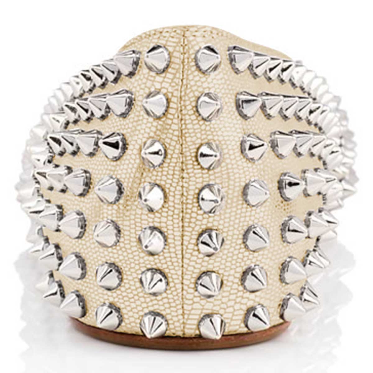 Chic Champagne Lizard Embossed Pointed Toe Flats with Rivets