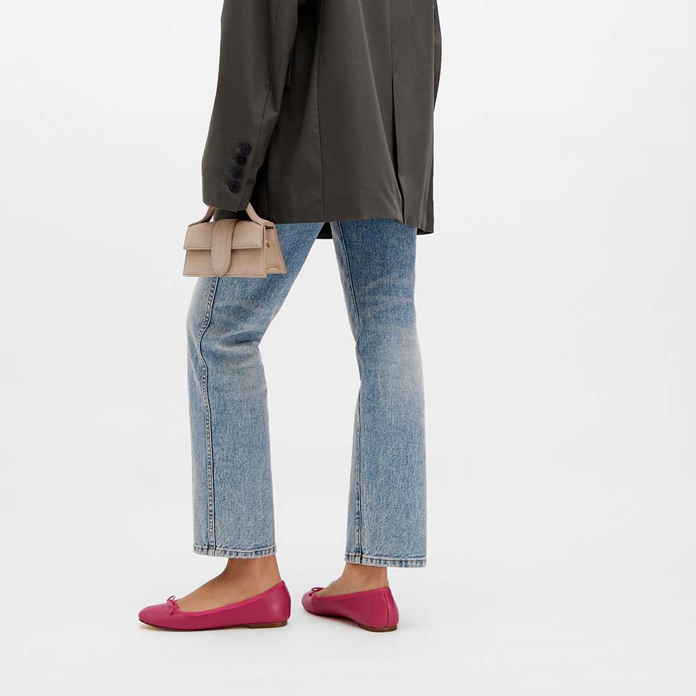 Step into sophistication with these chic fuchsia ballet flats. Featuring a classic round toe design and elegant bow detail, these flats offer timeless style and effortless charm for any occasion.