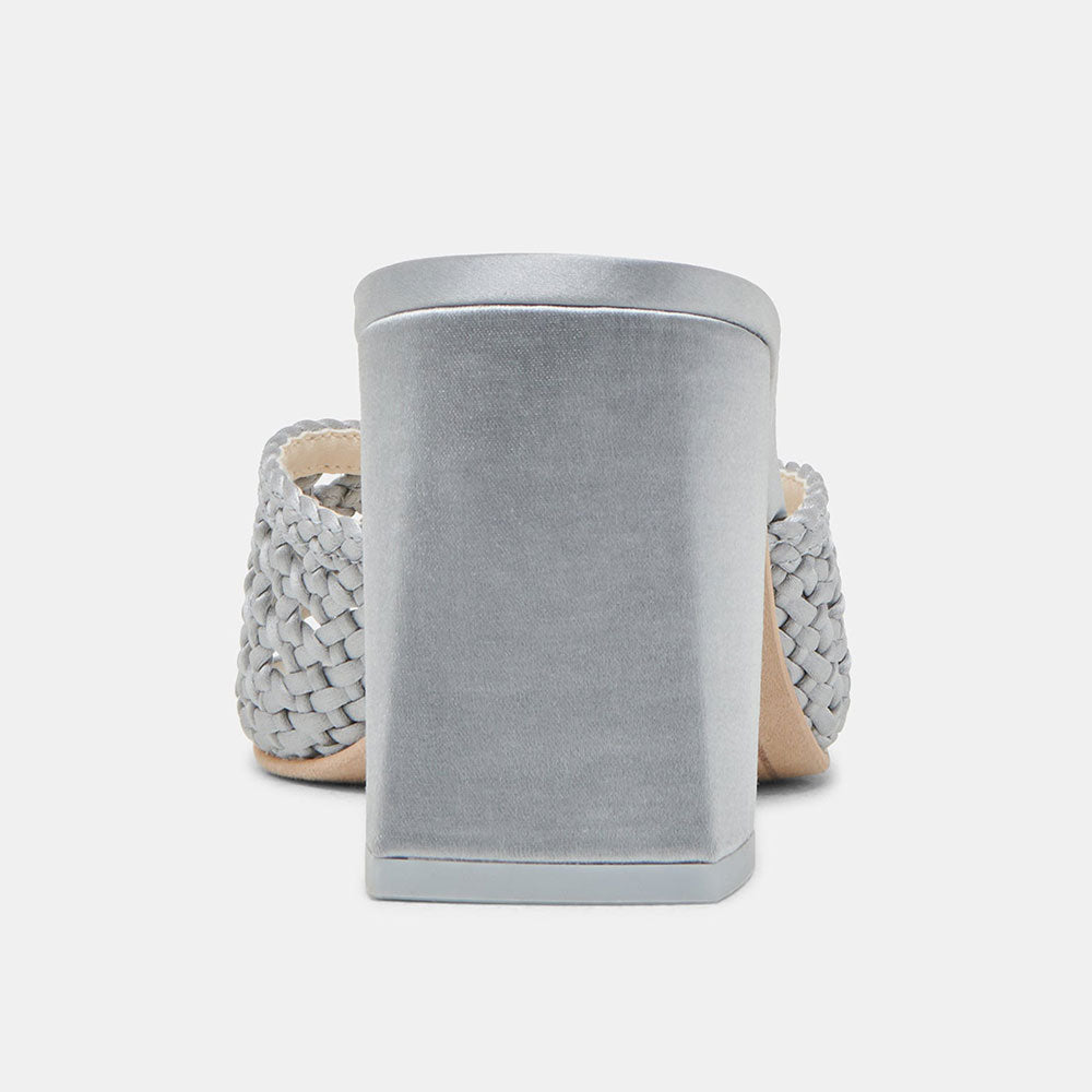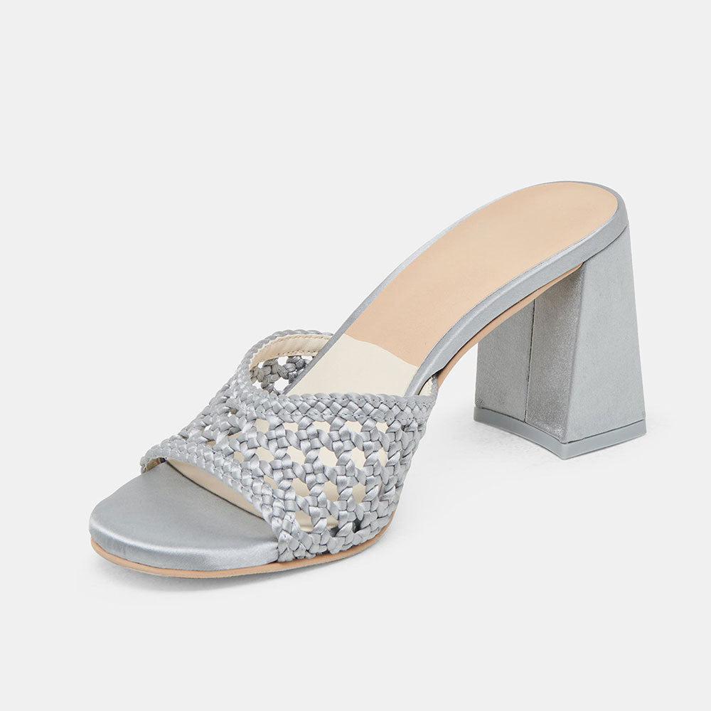 Chic Gray Woven Detail Open Round Toe Mule Block Heel Sandals