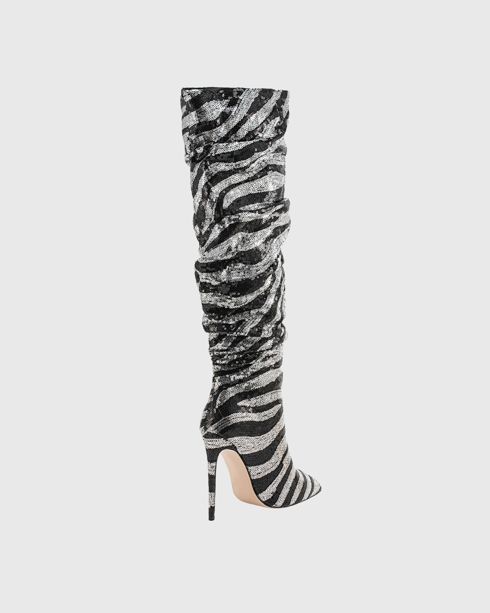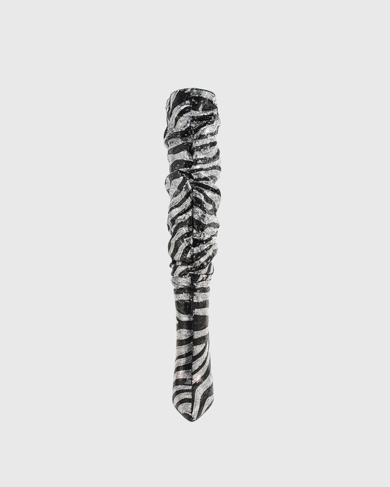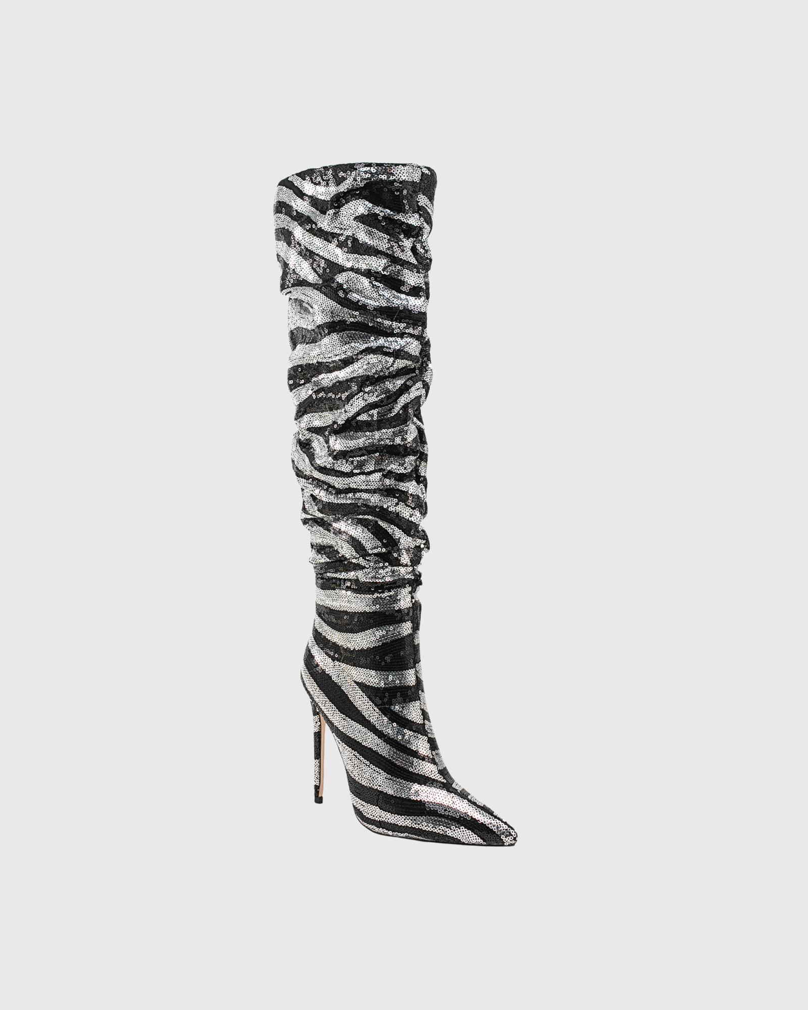 Claretta Zebra Print Ruch Knee High Boots