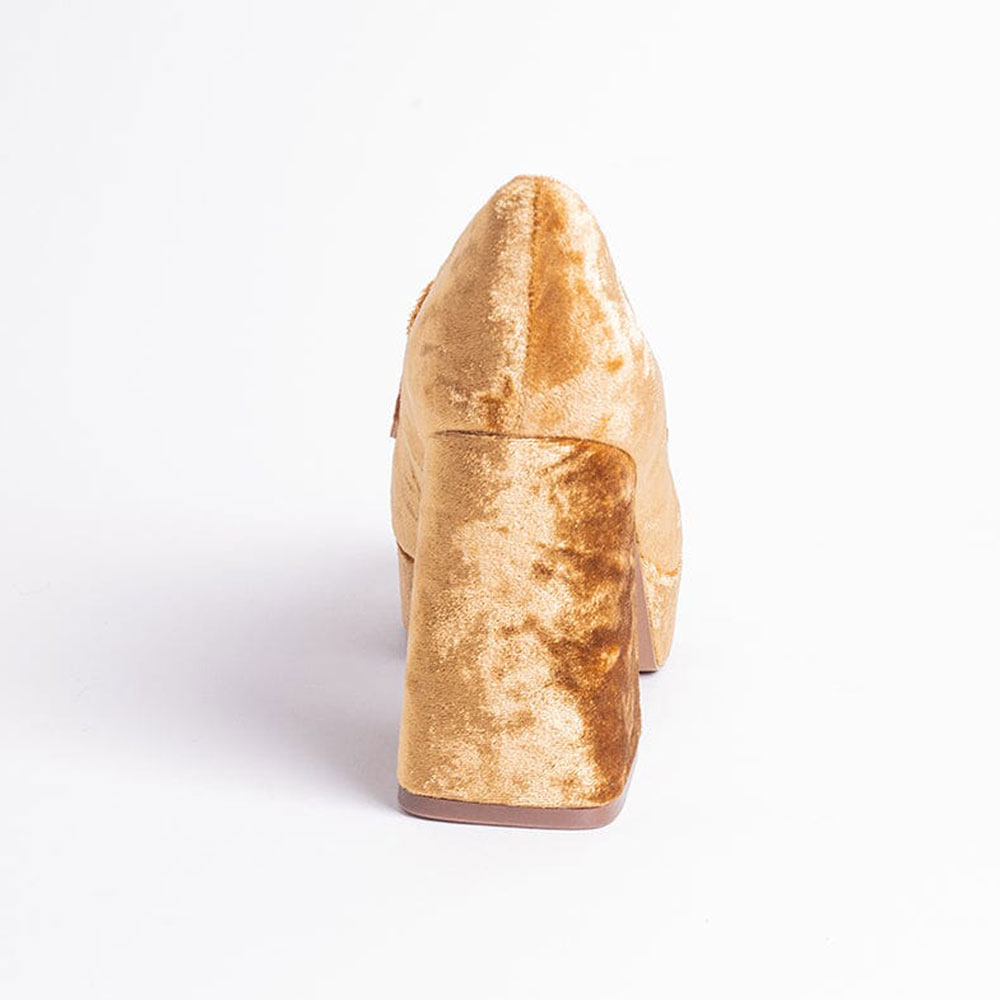 Step up your shoe game with these classy gold velvet block heel round toe platform loafers for women. Elevate your style effortlessly with this fashionable and comfortable footwear choice.