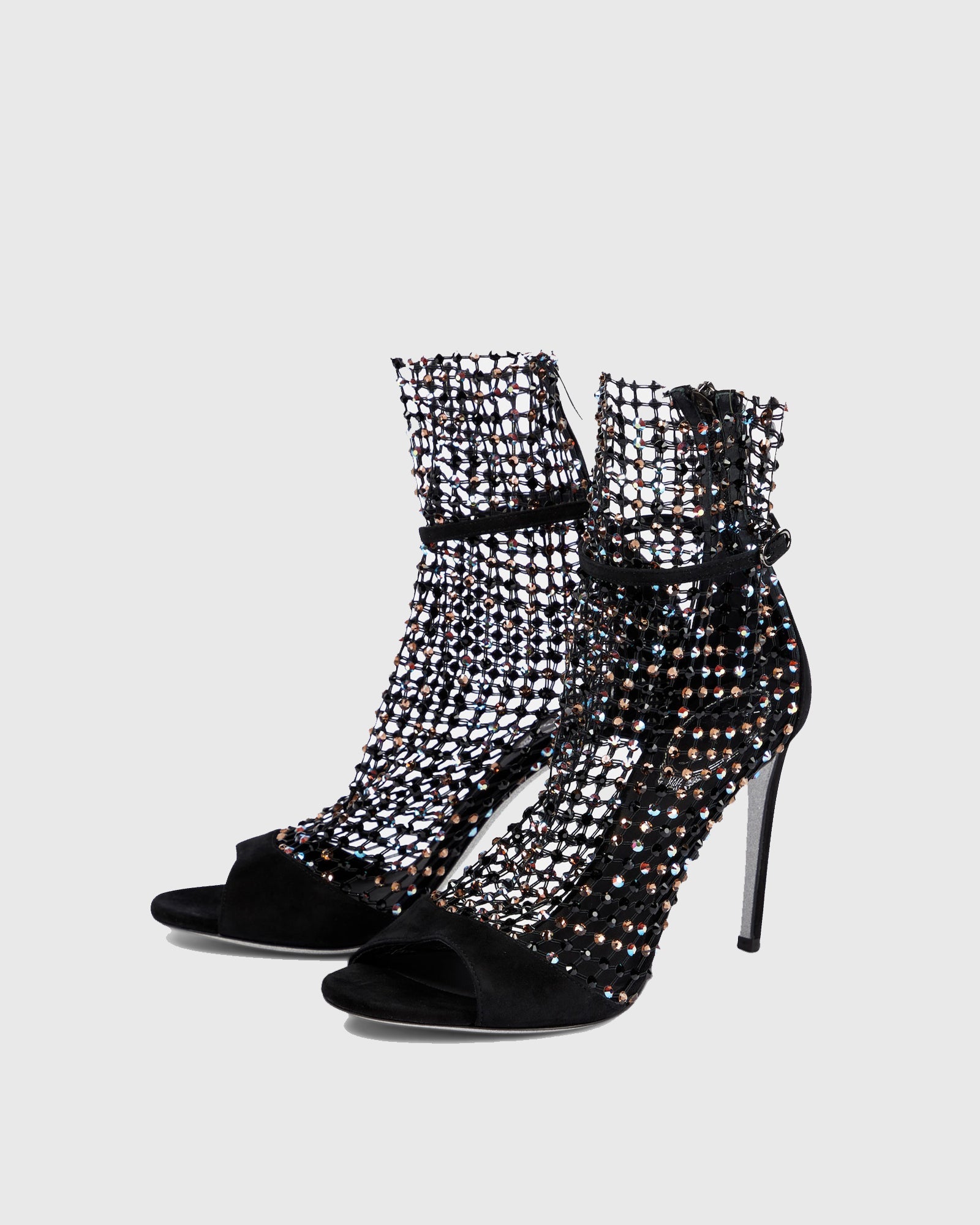 Cloe Rhinestone Embellished Fishnet Sandals In Black