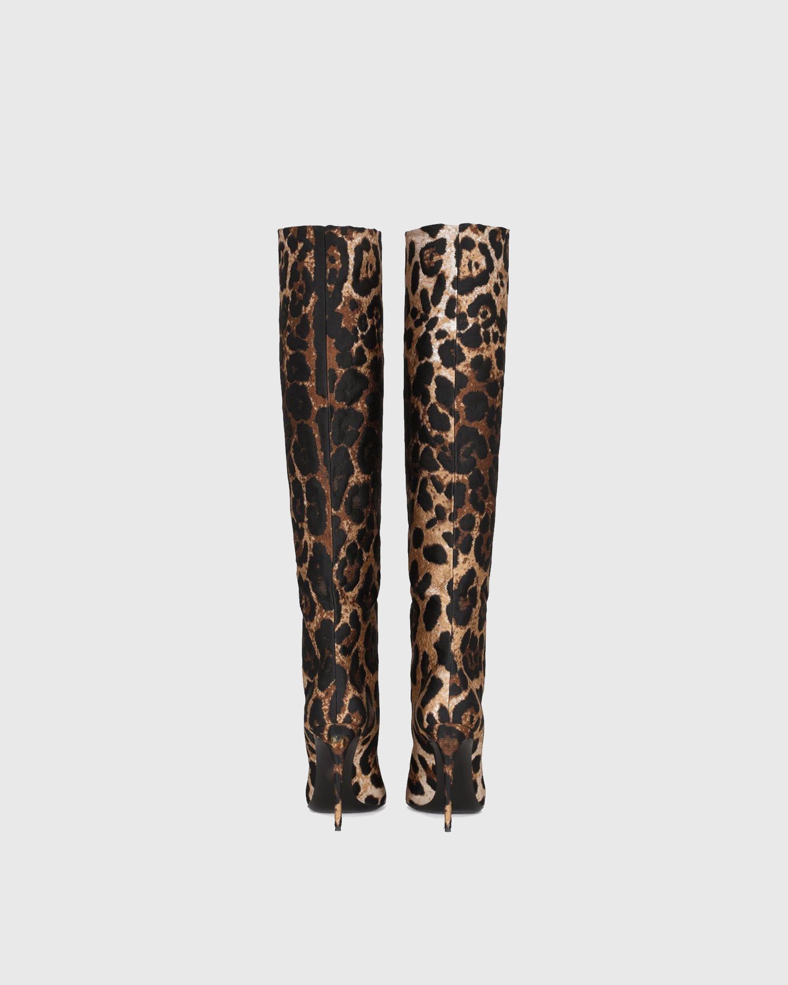 Make a statement with Cosetta Leopard Print Knee High Boots! Stand out with these fierce, high-quality boots that feature a stunning leopard print design. These boots will not only make a fashion statement, but they also provide comfort with their knee-high length and sturdy construction. Elevate any outfit effortlessly with these trendy and versatile boots.