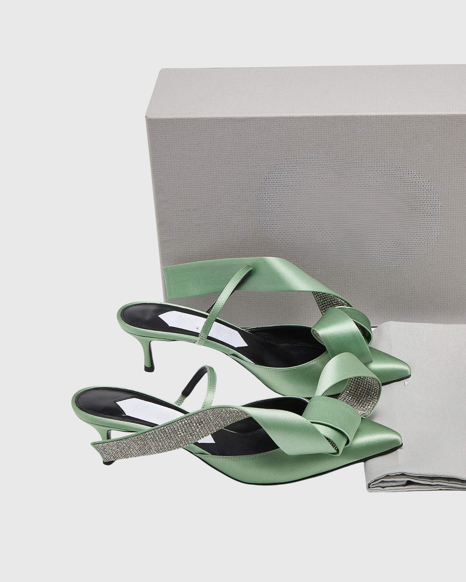 Crocifissa Spiral Rhinestone Bow Mules In Green
