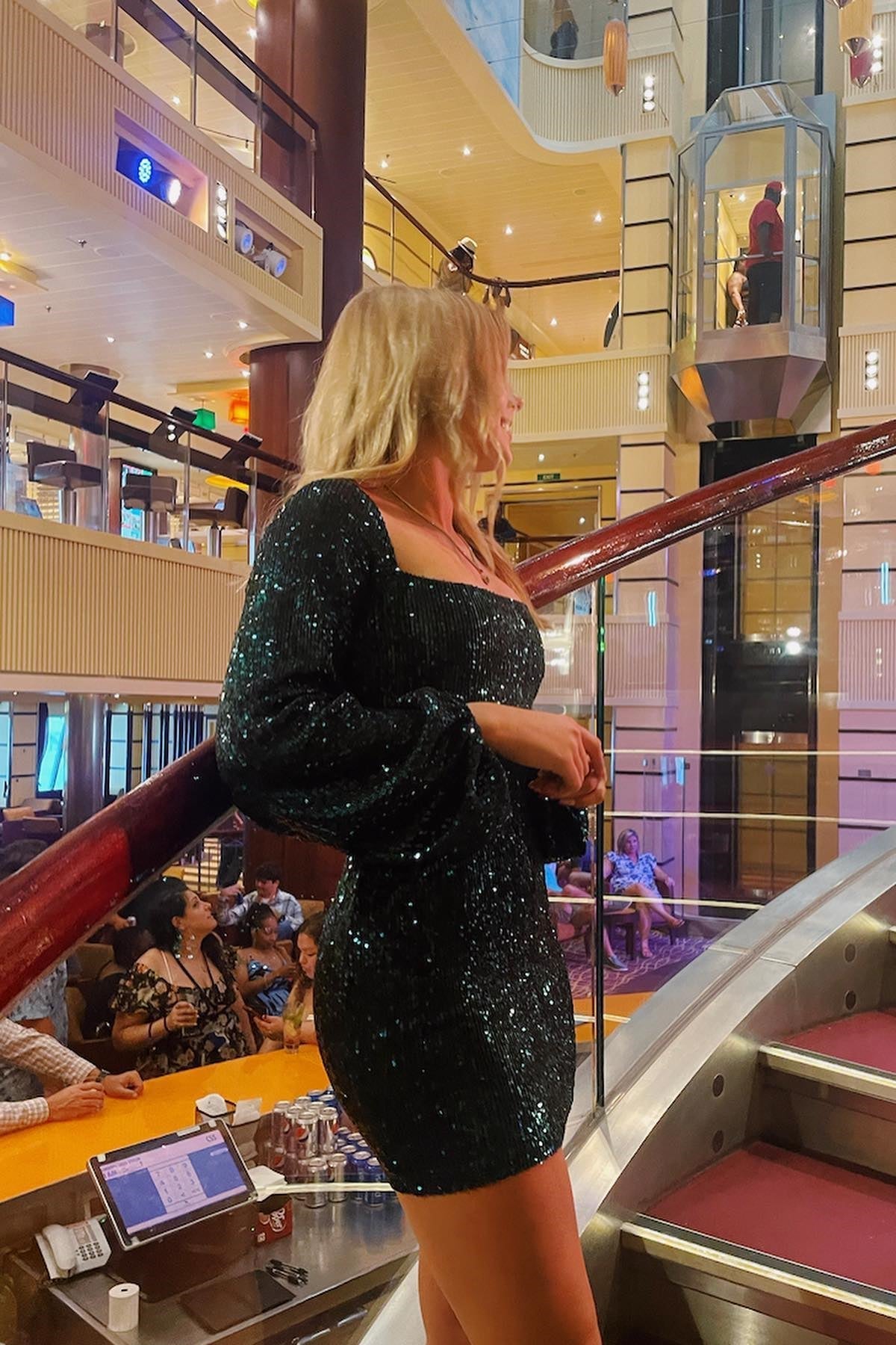 Dark Green Long Sleeves Sequins Square Neck Homecoming Dress Prom Gown