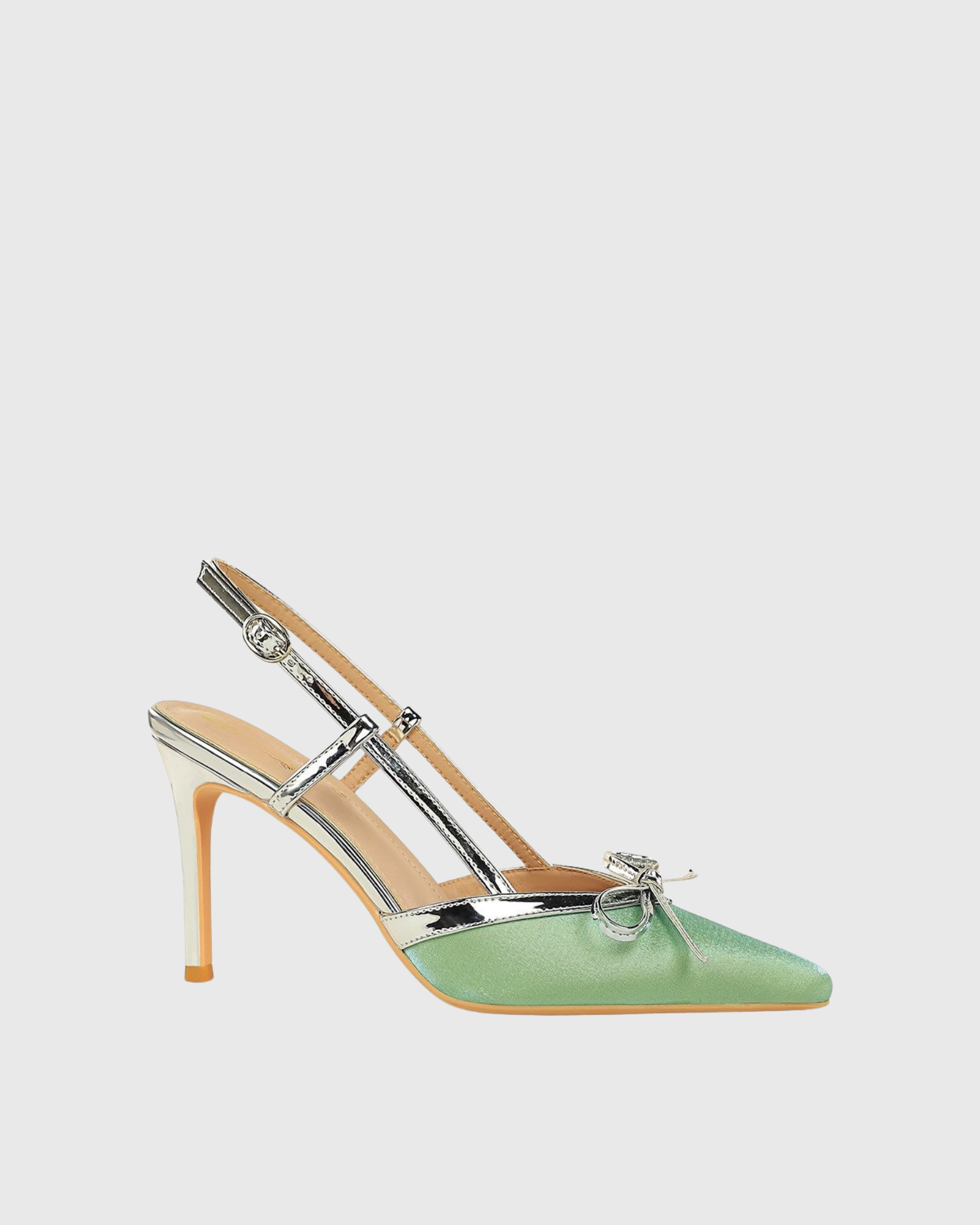 Step into elegance with the Easton Bow Slingback Pumps in Green. Featuring a chic bow detail and a comfortable slingback design, these pumps add a fresh pop of color to any outfit. Perfect for both day and evening wear, they combine style and comfort effortlessly, making them a must-have addition to your wardrobe.