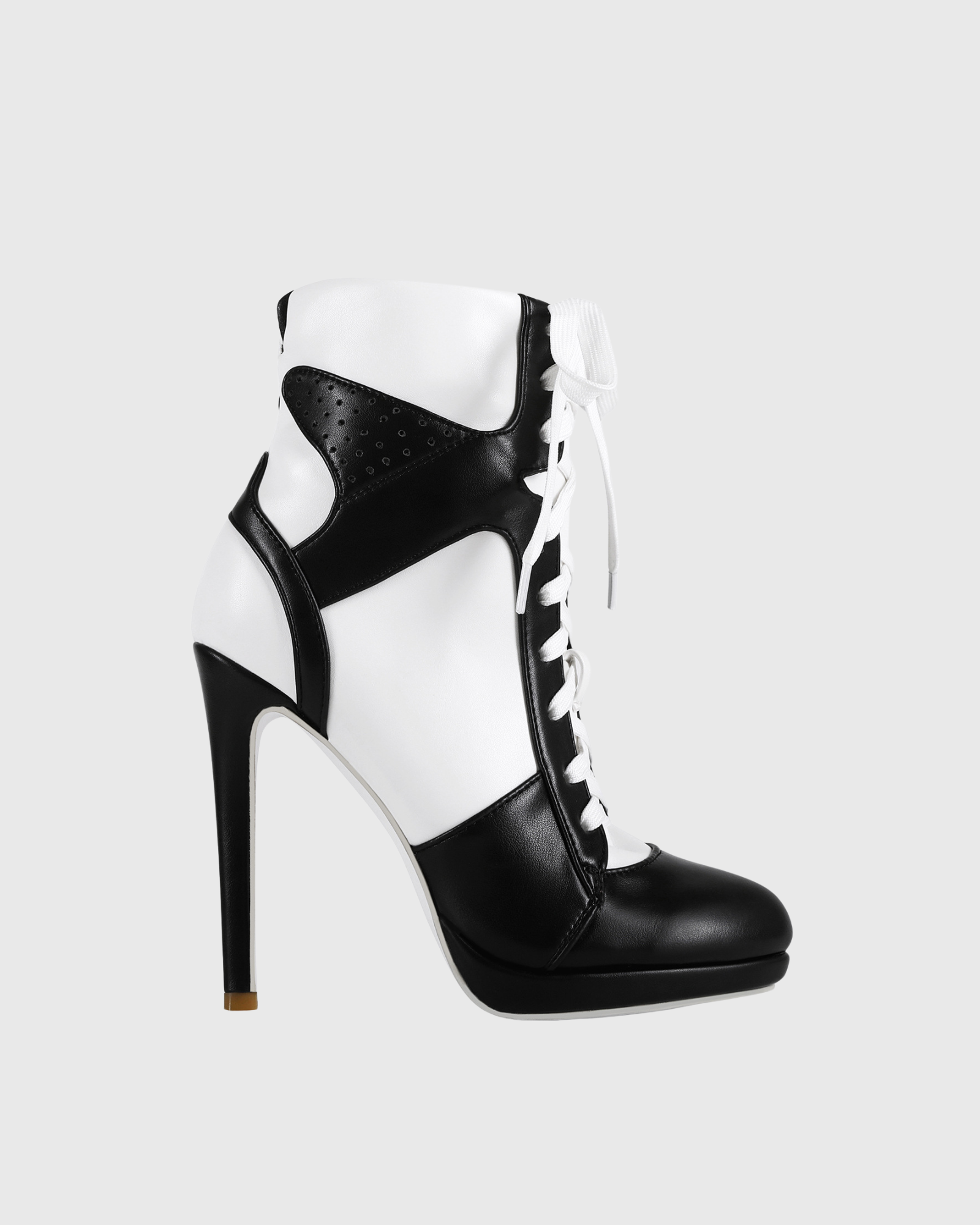 Step out in confidence with the Ebba Splicing Lace Up Ankle Boots. Crafted to blend style and durability, these boots feature a unique splicing design and secure lace-up closure for a customized fit. Perfect for elevating any outfit, they deliver both comfort and modern edge, making them an essential addition to your wardrobe. Experience versatile footwear that keeps you ready for any occasion.