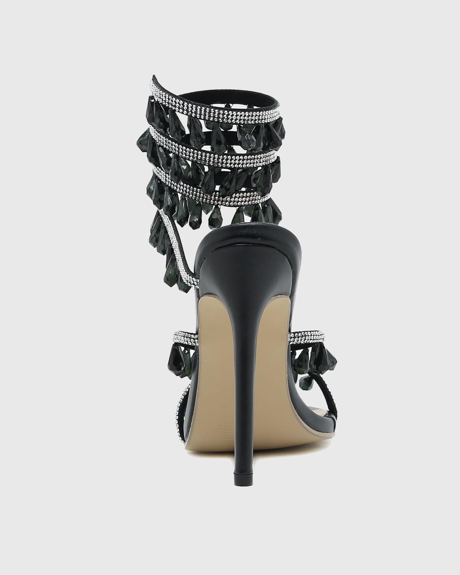 Elisa Diamond Fringe Snake Sandals In Black
