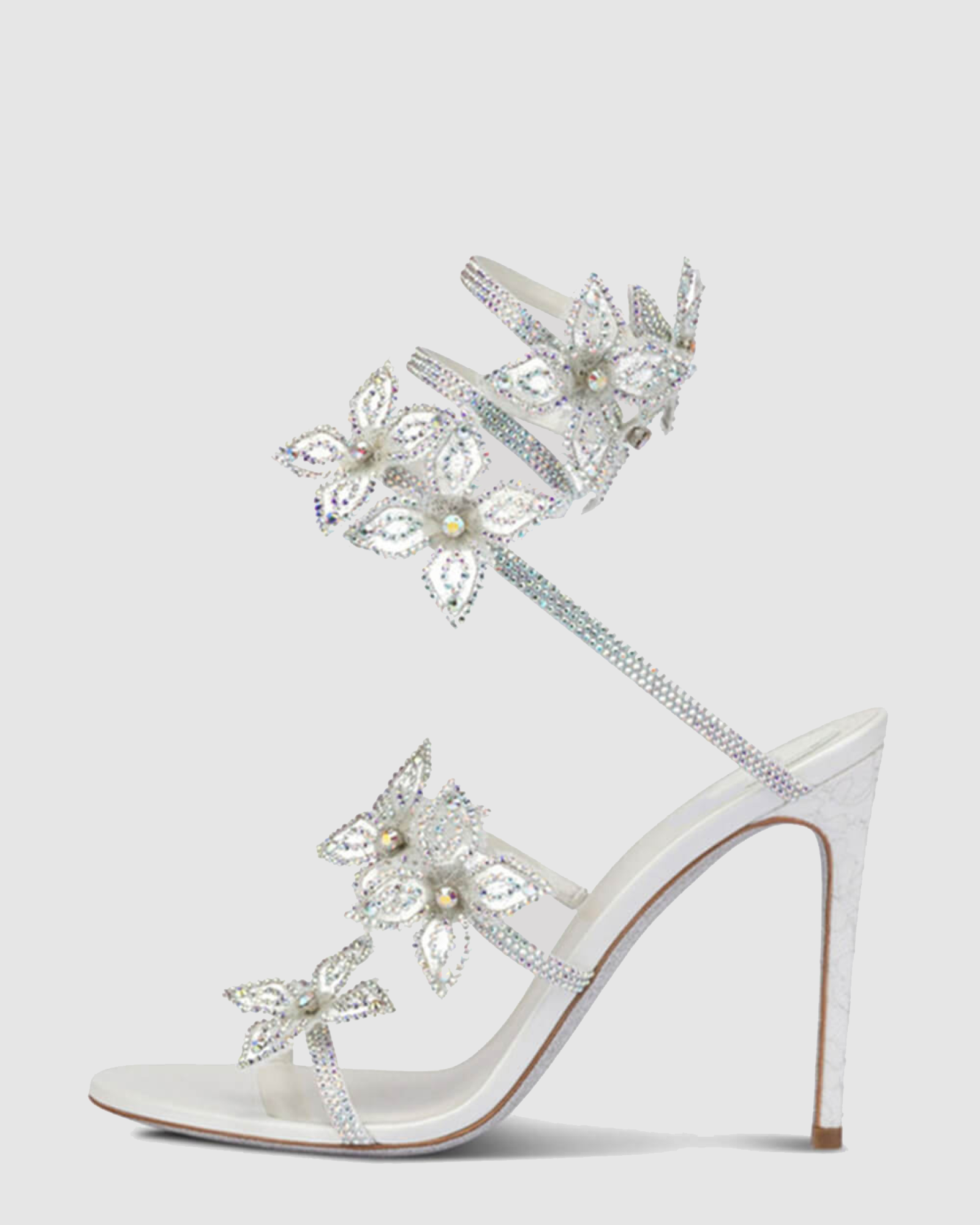 Elevate your summer style with the Elisa Flower Embellished Snake Sandal! These white lace-up sandals feature delicate flower embellishments that add a touch of elegance to any outfit. With a comfortable fit and chic design, these sandals are perfect for any occasion. Step out in style with the Elisa sandals.
