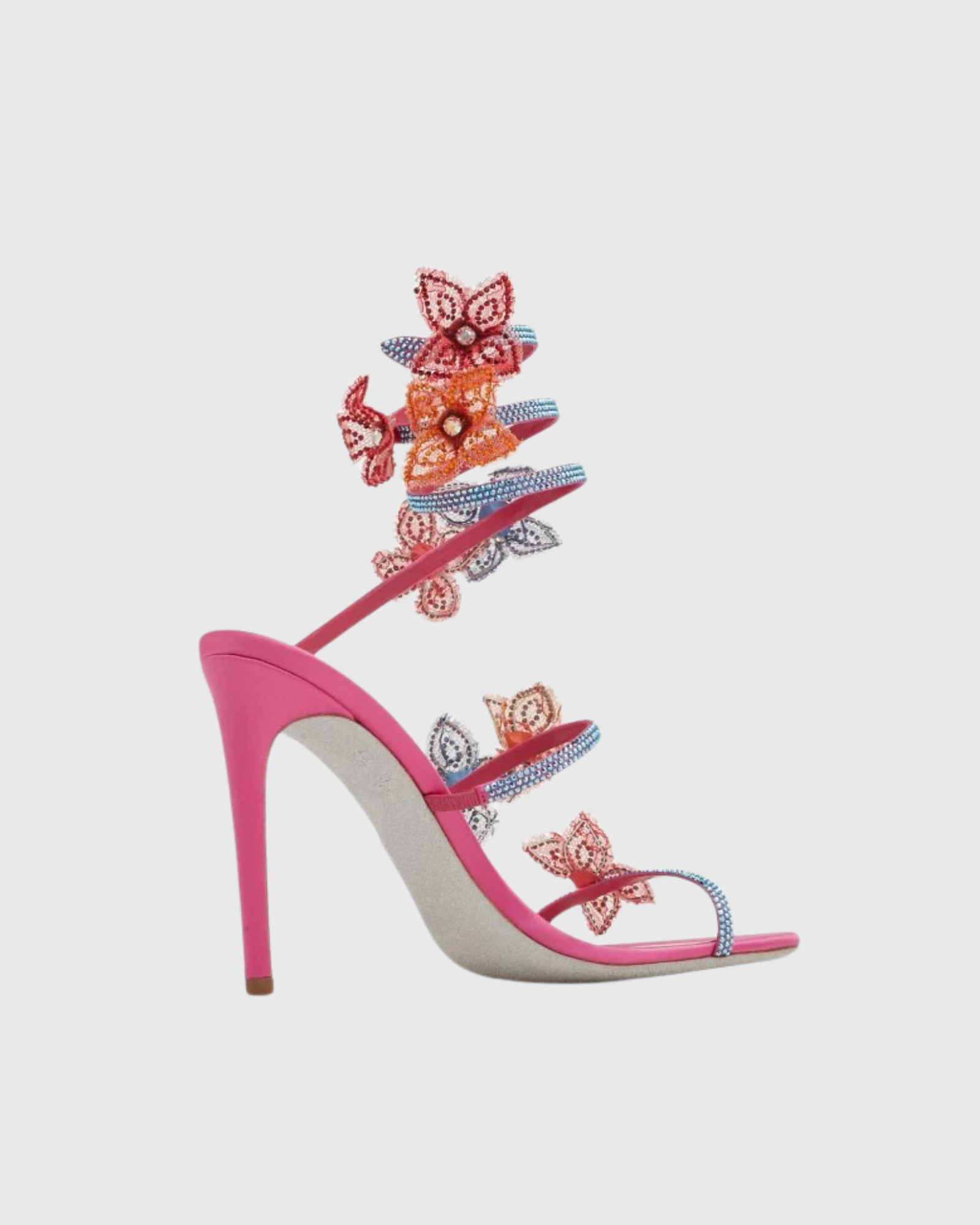Elisa Flower Embellished Snake Sandals In Hot Pink