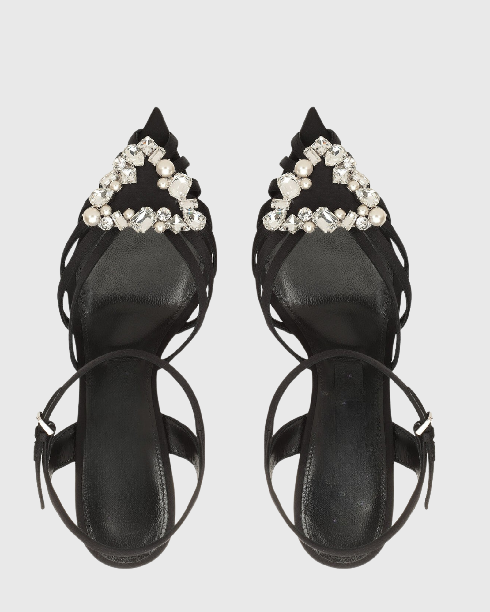 Emilee Diamond Triangle Strap Cage Sandals In Black