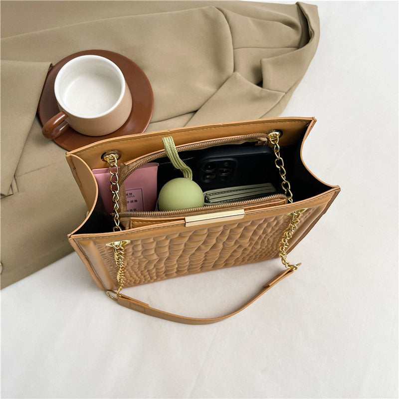Fashion Solid Color Crocodile Print Large Capacity Shoulder Bag