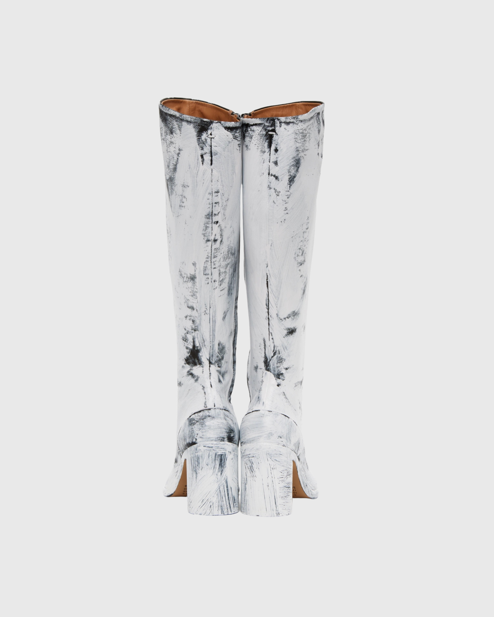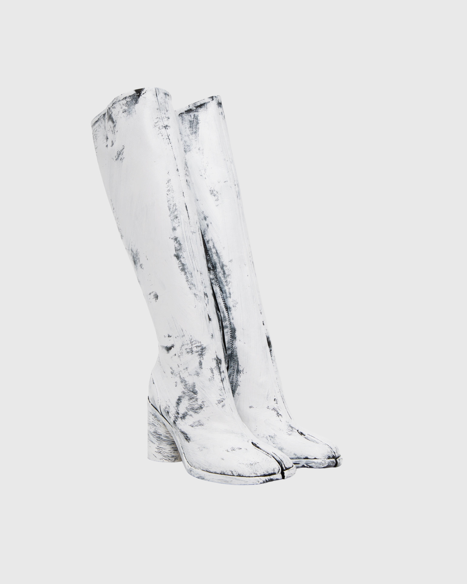 Experience the perfect blend of style and comfort with our Fiore Paint Effect Tabi Knee High Boots. Featuring a unique paint effect design, these boots are sure to make a statement. Made with high-quality materials, they provide all-day support and durability. Elevate any outfit with these must-have boots!