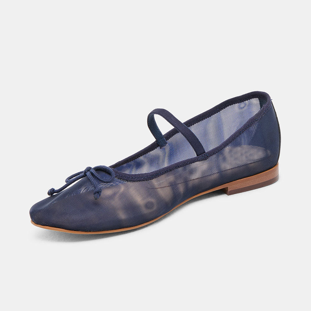 FSJ Navy Mesh Round Toe Bow Simple Ballet Flats with A Strap