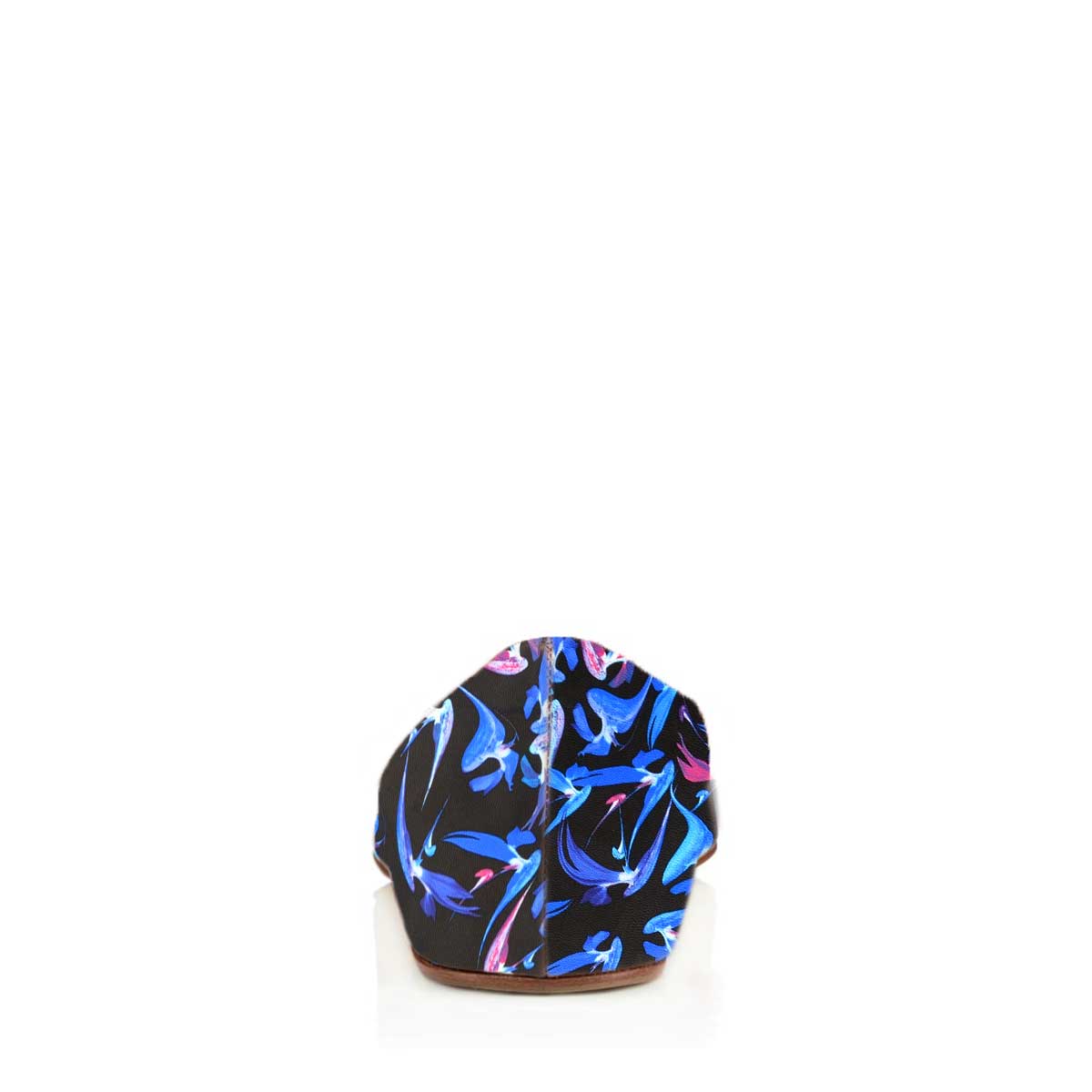 FSJ Women's Black Pointed Toe Flats with Blue Floral Print