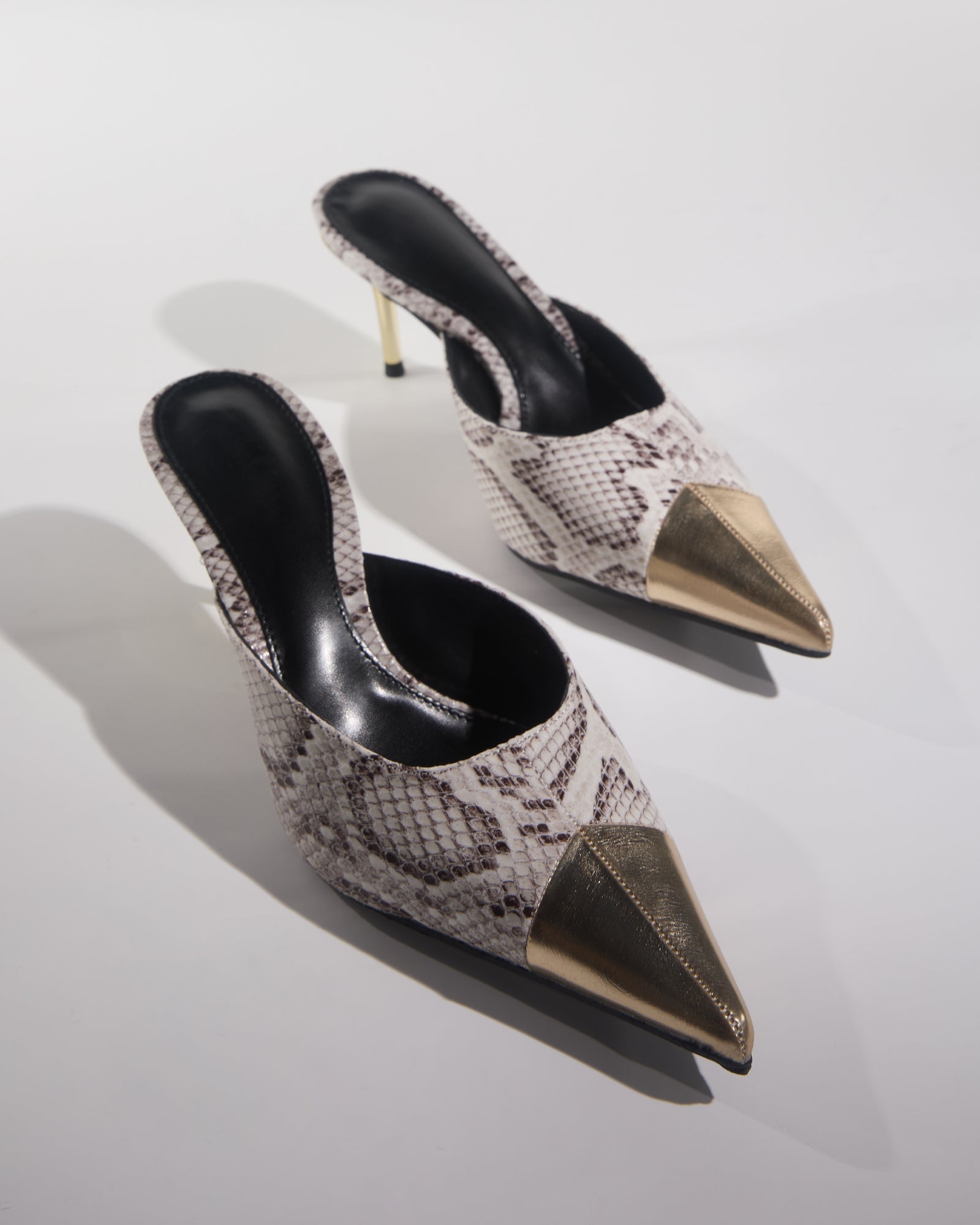 Step into luxury with our Georgia Snake Print Mules. These head-turning shoes combine exotic snake print texture with unparalleled comfort, perfect for elevating any outfit from casual to sophisticated. The slip-on design offers effortless style while the cushioned footbed ensures all-day wearability. Don't just walk—make a statement with every step.