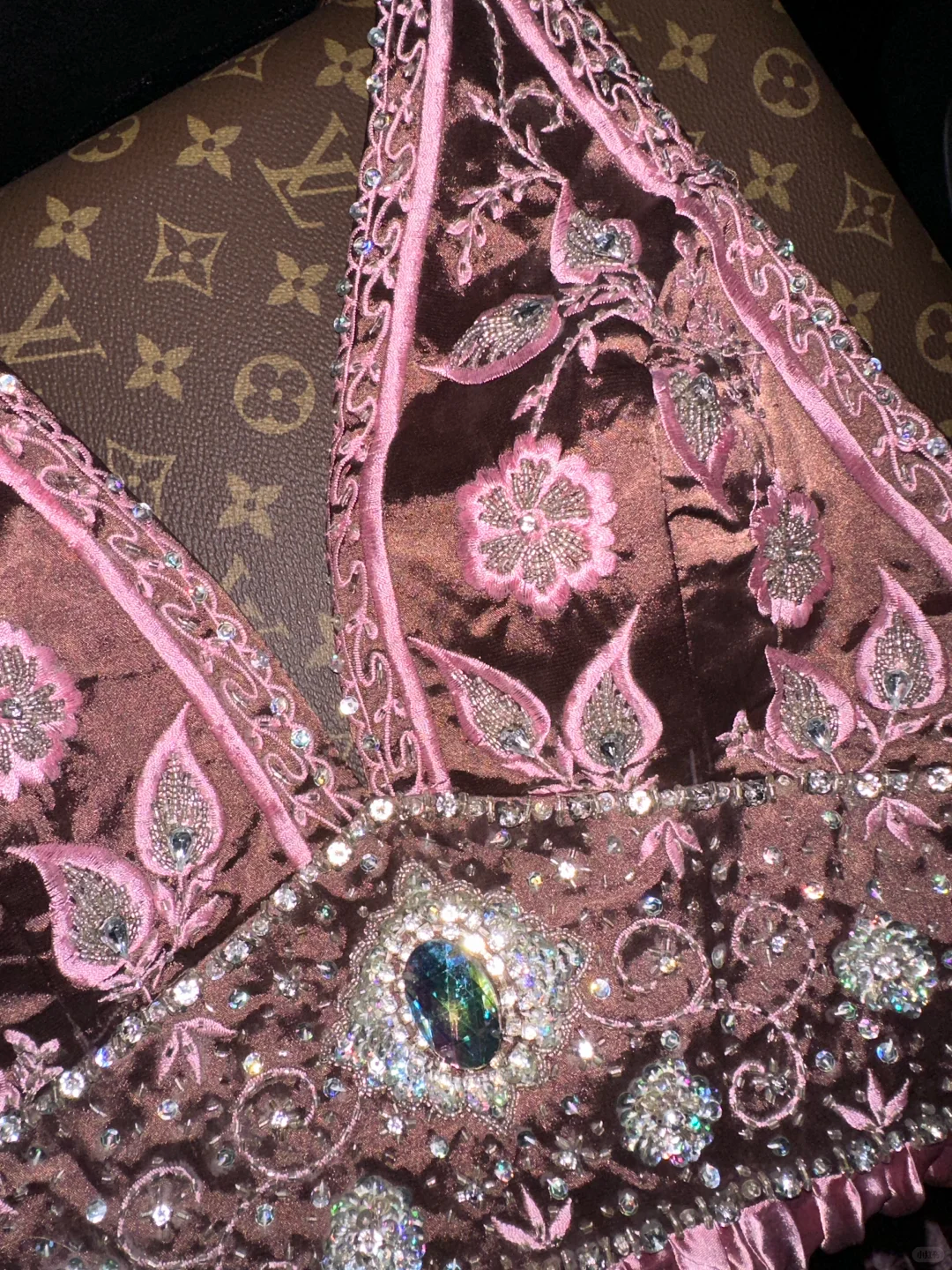 Glamorous Rose Pink Satin Pleated Halter Neck Beaded Embroidered Bodice Evening Gown TP5359
