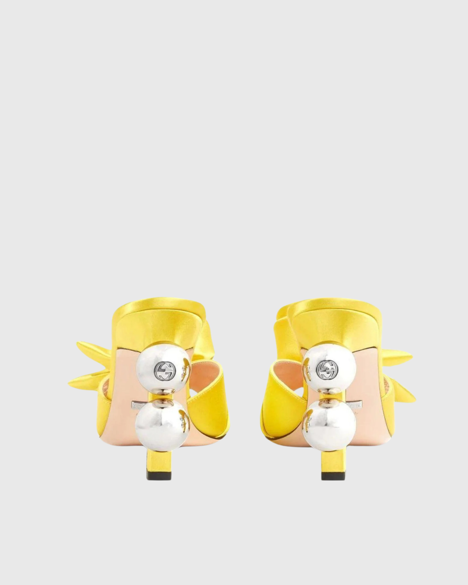 The Keily Satin Flower Mules In Yellow are a must-have for any fashion-forward individual. The delicate satin material and intricate flower design add a touch of elegance and sophistication to any outfit. Slip into these mules and step confidently into your day, knowing that you are making a bold and stylish statement.