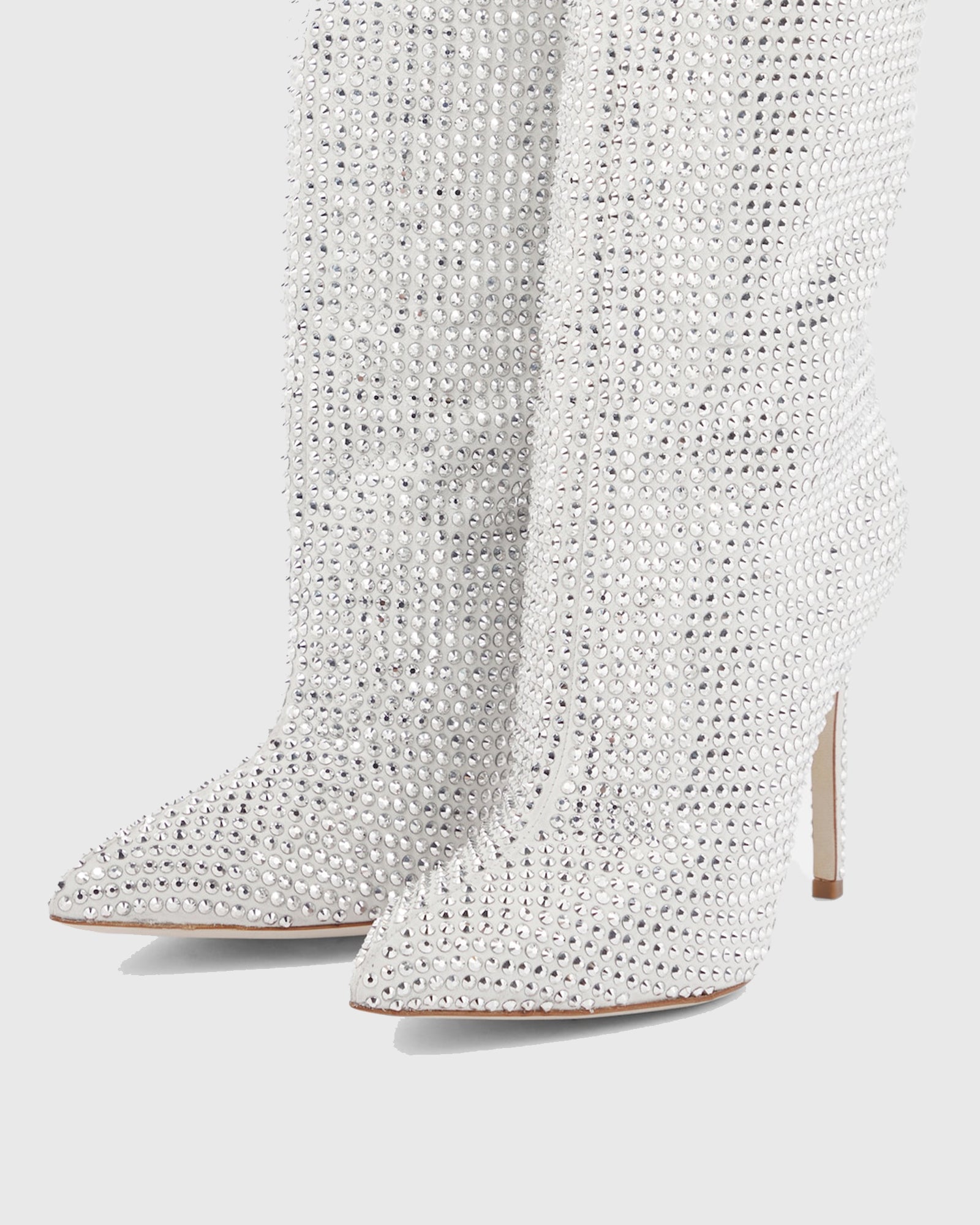 Laurenza Rhinestone Embellished Leather Knee High Boots In Silver