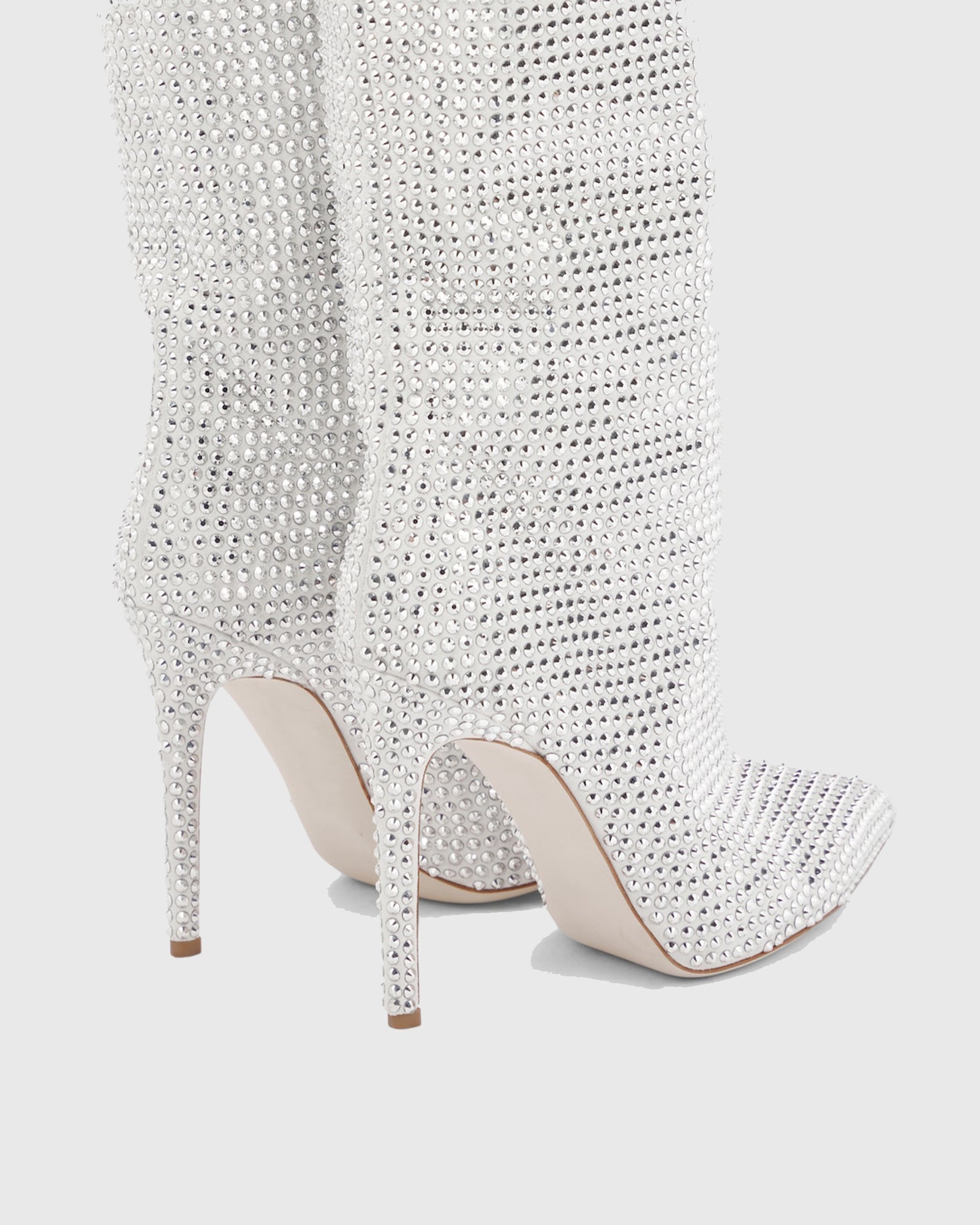 Elevate your look with the stunning Laurenza Rhinestone Embellished Leather Knee High Boots in Silver! Made with genuine leather and adorned with sparkling rhinestones, these knee high boots will add a touch of glamour to any outfit. Perfect for a night out or special occasion, these boots are a must-have for any fashion-forward individual.