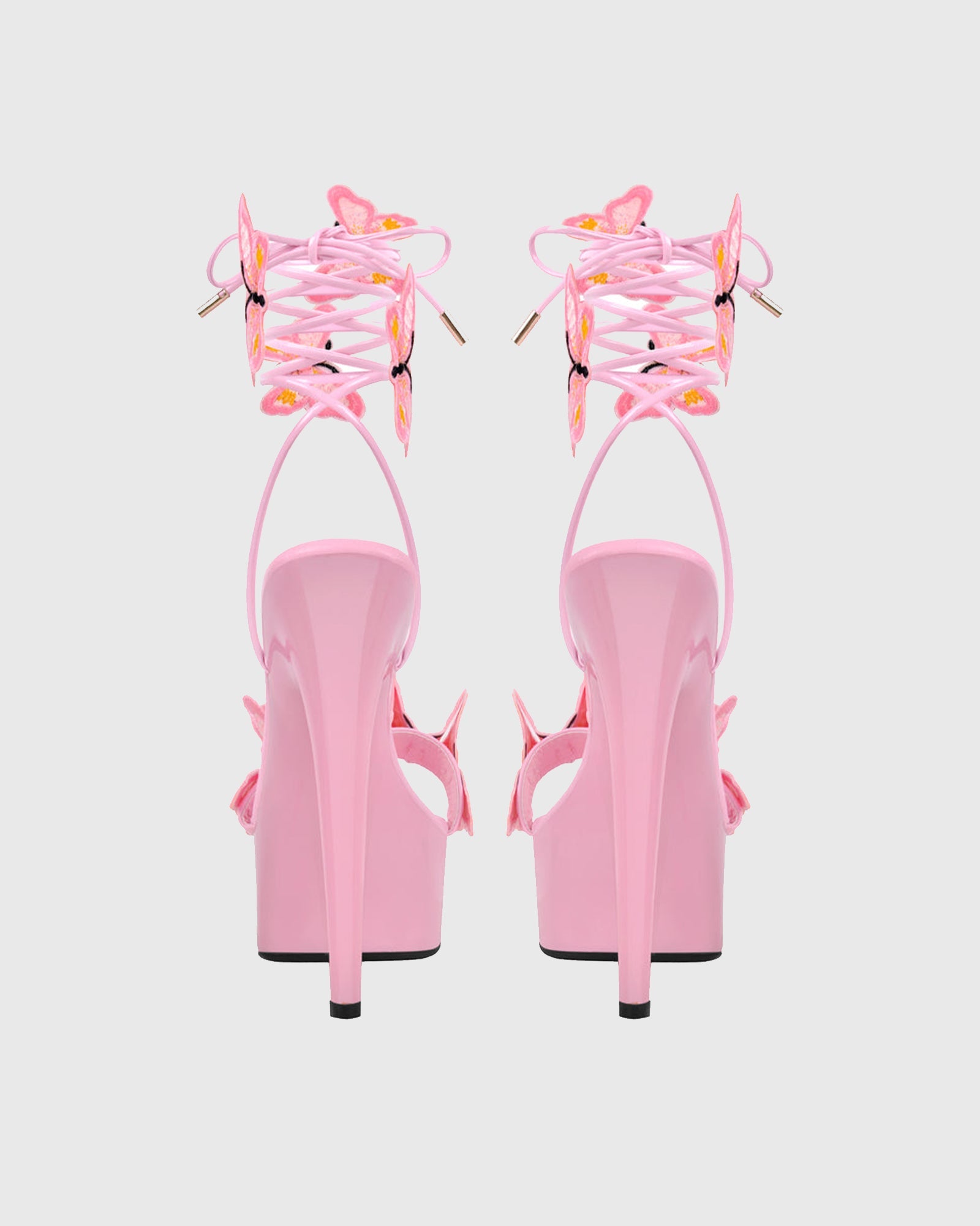 Lelia Bow Embroidery Lace Up Platform Sandals In Pink