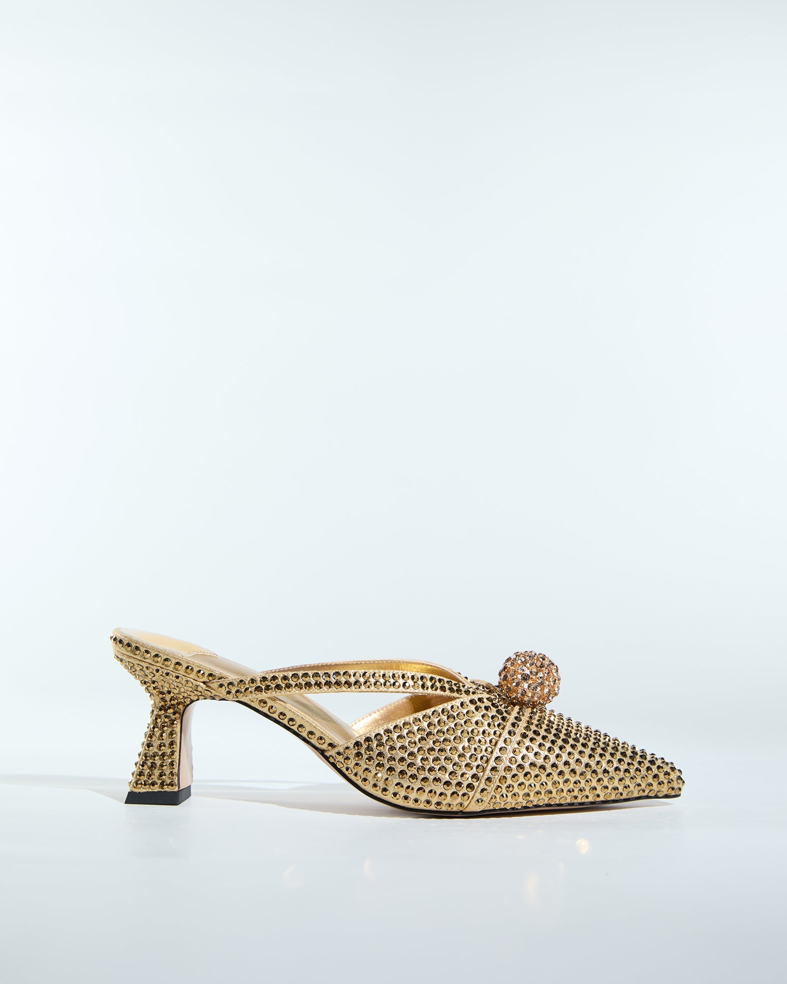 Liviana Bead Rhinestone Embellished Mules In Gold