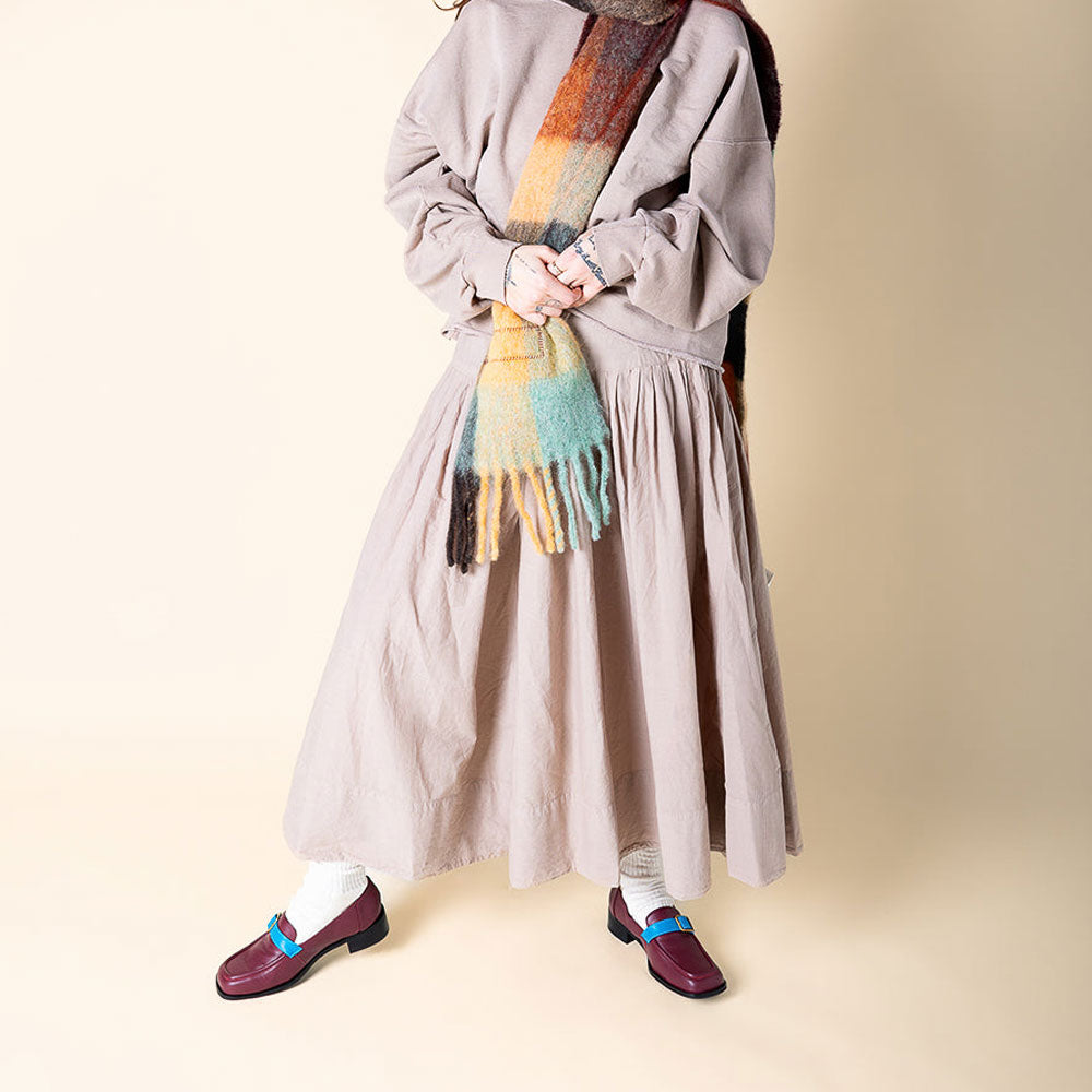 Maroon Square Toe Low Chunky Heel Women's Loafers with Blue Decor