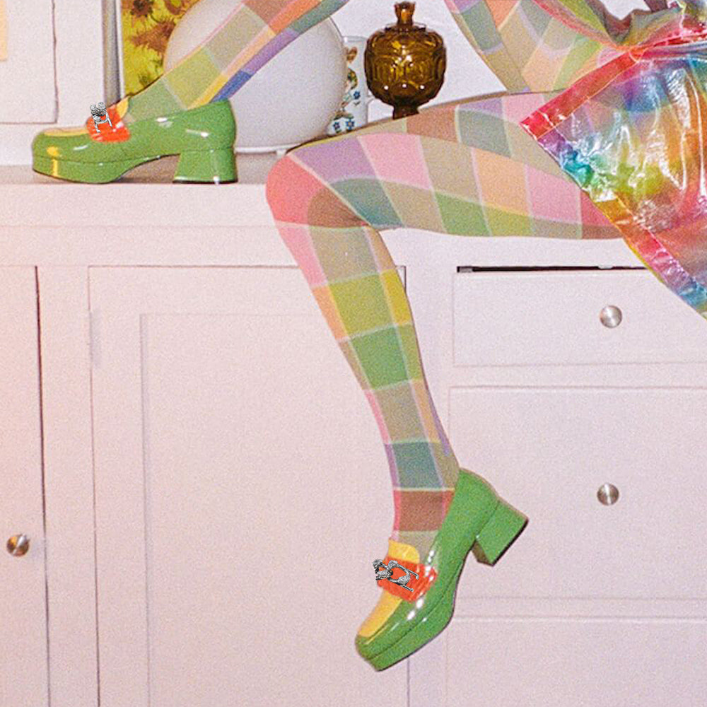 - Special Designs: Multicolor patent leather loafers feature a metal chain embellishment design.
