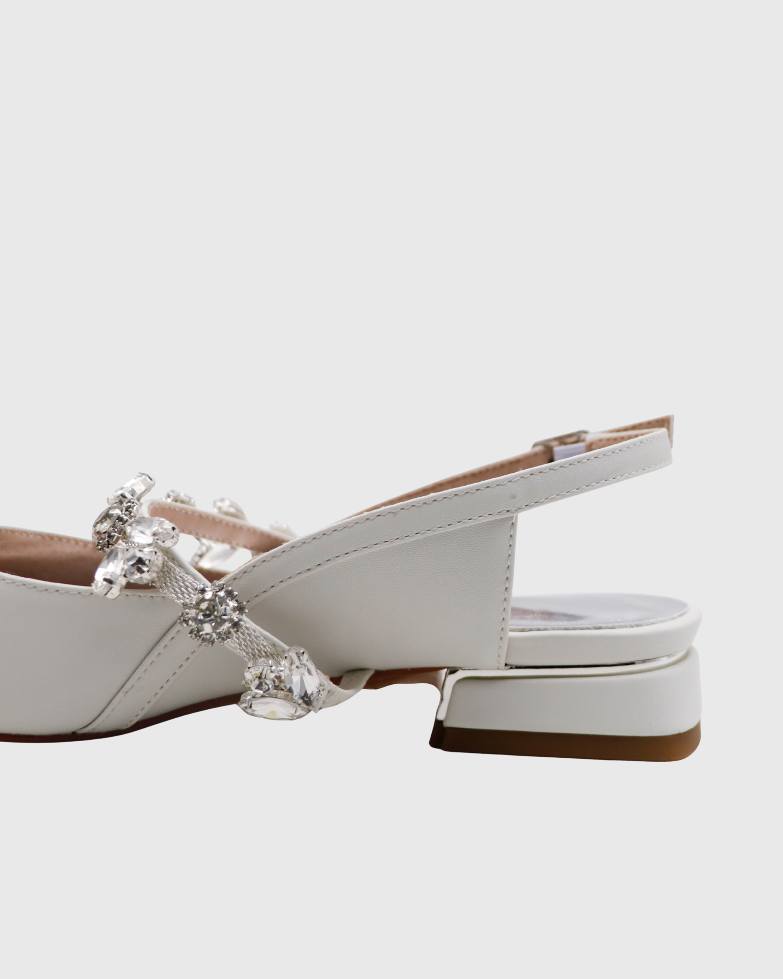 Nerina Rhinestone Strap Leather Flats In White