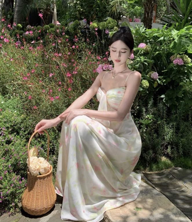 New Fashion Sexy Floral Design A-Line Beach Holiday Spaghetti Strap Dress TP3027