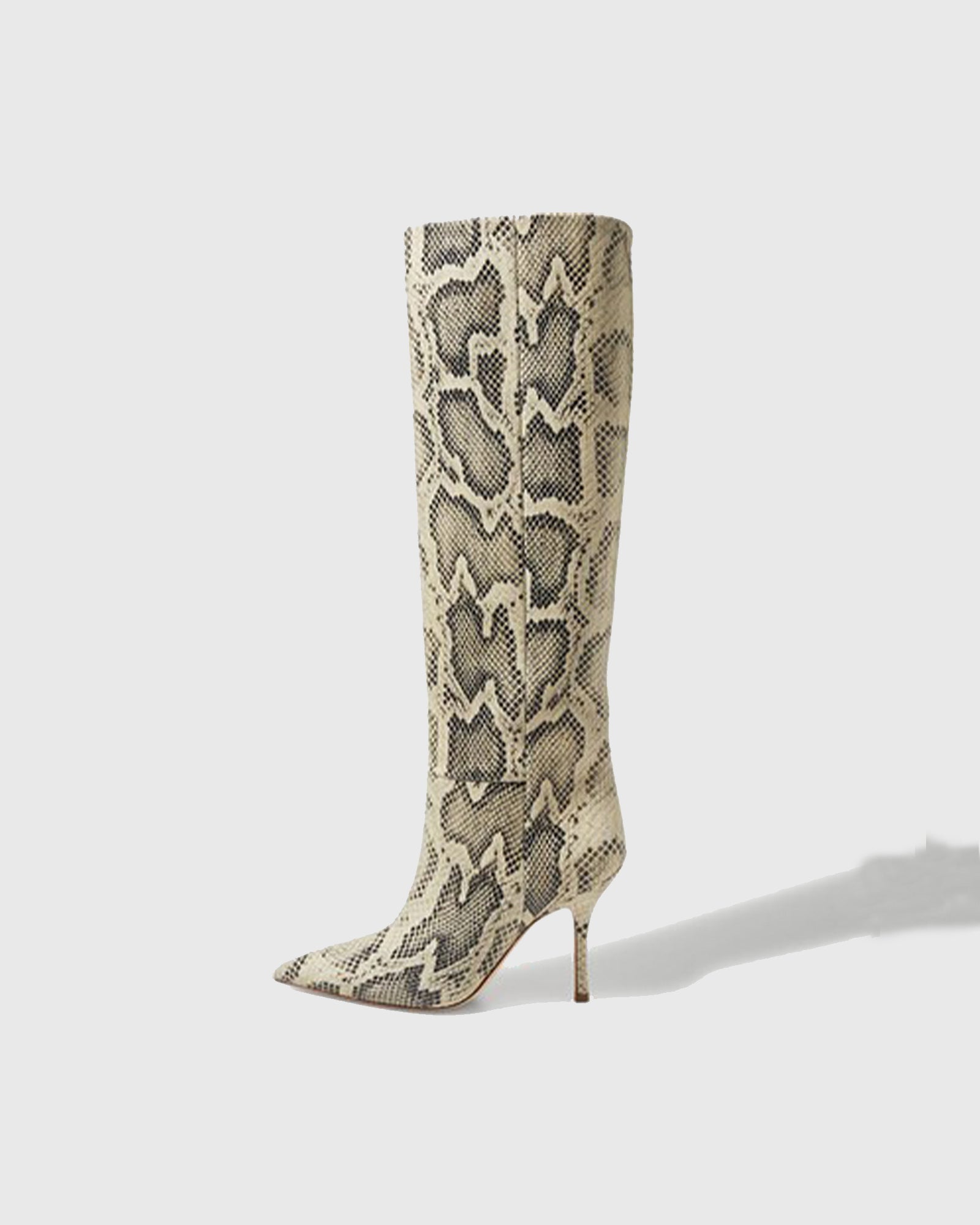 Elevate any outfit with our Pietra Snake Print Leather Knee High Boots! Made with high-quality leather, these boots feature a stunning snake print pattern that adds a touch of edginess to your look. With their knee-high design, they provide both style and functionality. Perfect for any fashion-forward individual.