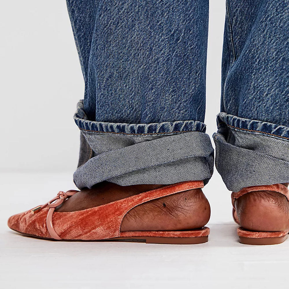 These Pink Velvet Pointed Toe Bow Strap Slingback Flats epitomize elegance and comfort. They're perfect for any occasion with a sleek pointed toe, charming bow strap, and adjustable slingback.