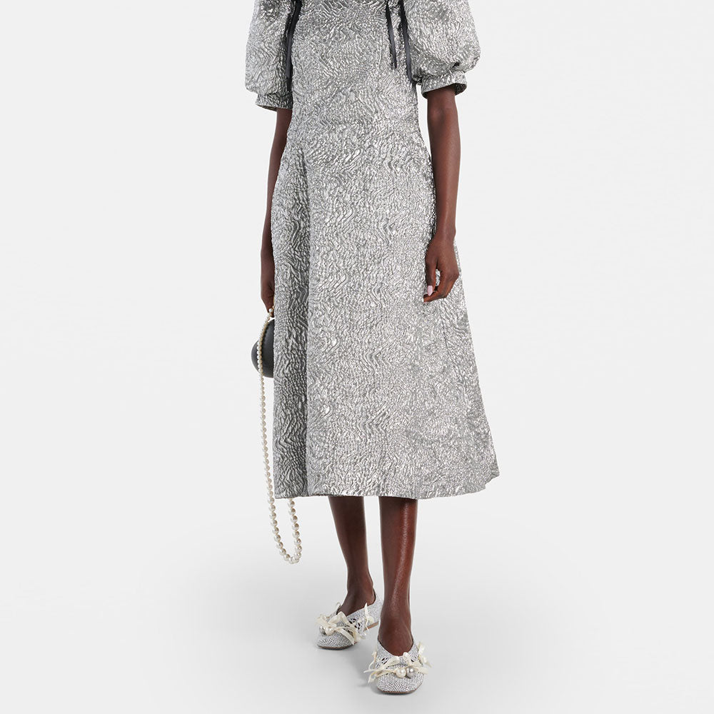 Elegant and stylish, these silver crochet mesh dress flats feature a square toe design adorned with pearl bow decor, perfect for adding a touch of sophistication to your ensemble.