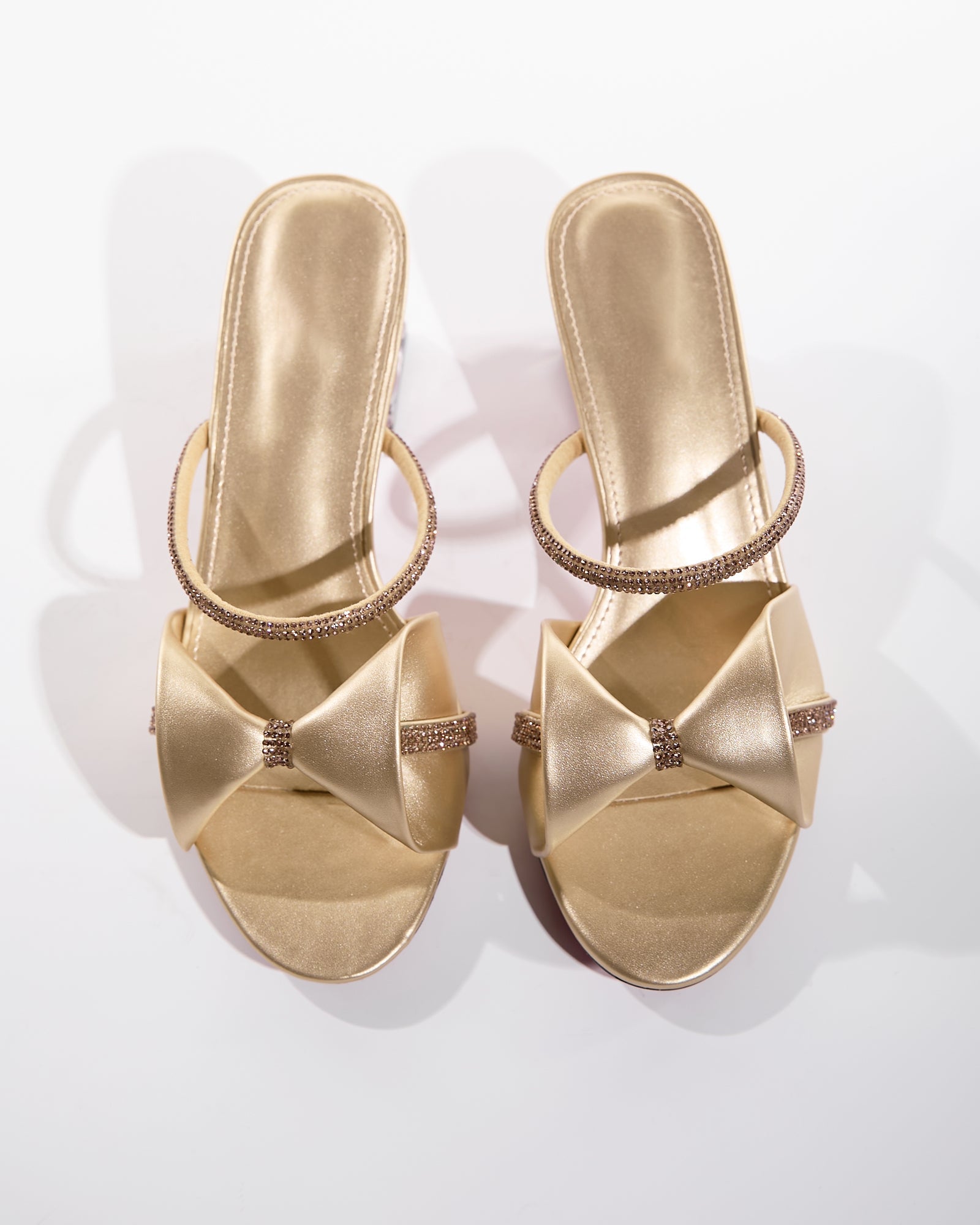 Elevate your style with our Skyla Bow Sparkl Strap Slippers! Their gold shimmer and bow detail add a touch of glam to any outfit. The comfortable fit and sturdy strap provide all-day support, perfect for a day of strolling in style. Step into luxury and shine with every step!