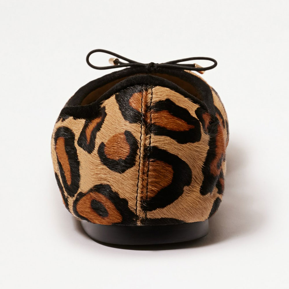 Tan Round Toe Bow Accent Elastic Top Line Leopard Flats by FSJ