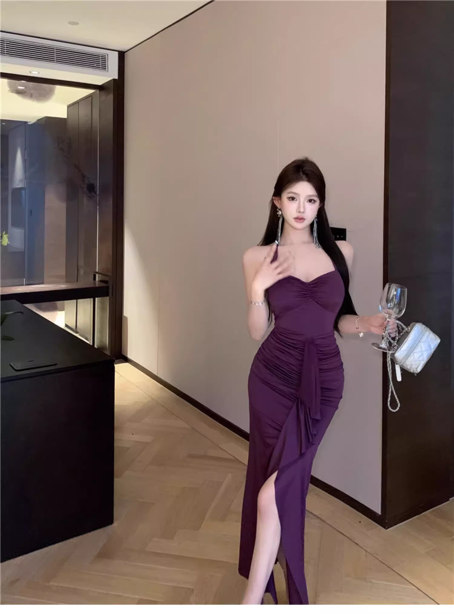Vintage Purple Sweetheart Pleated Design Prom Dress A-line Halter Dress TP3575