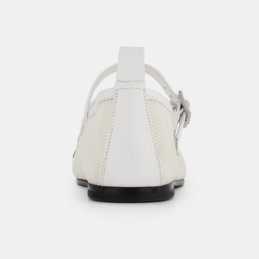 - Special Designs: White Mary Jane flats with mesh sophistication and beads and sequins embellishment.