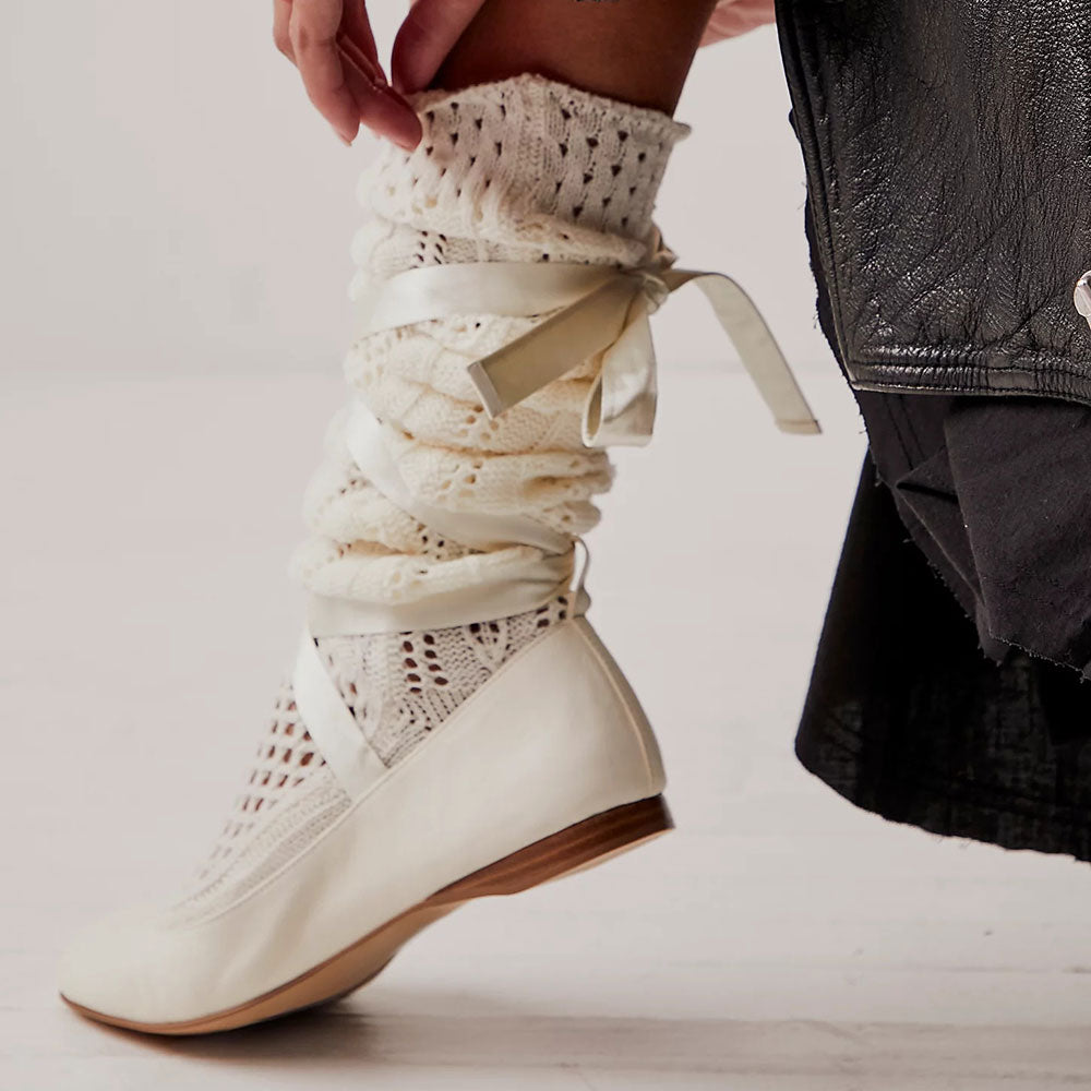 - Special Designs: The square-toe elegant ballet flats feature a lace-up ribbon design.