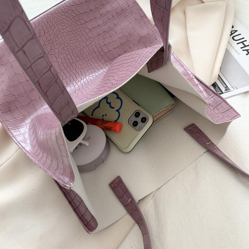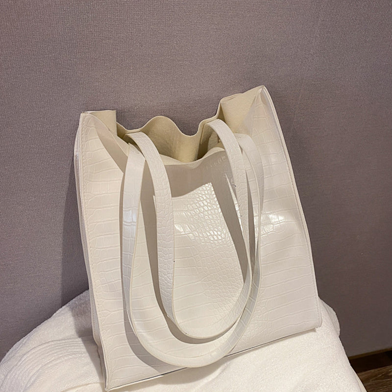 Women Fashion Basic Crocodile Pattern Large Capacity PU Shoulder Bag