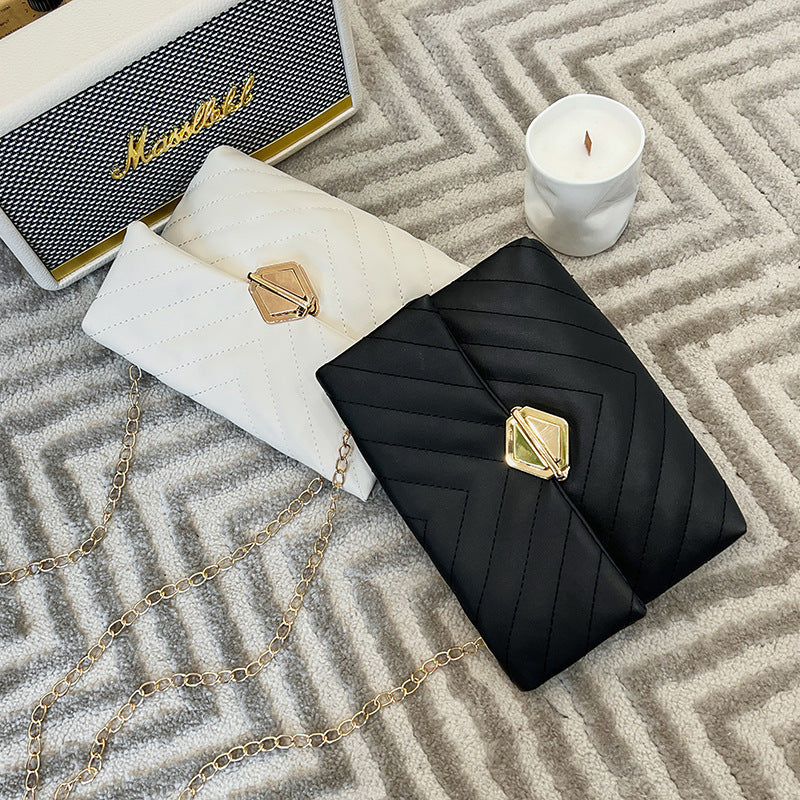 Women Fashion Basic Solid Color Pu Metal Lock Chain Crossbody Mini Square Bag